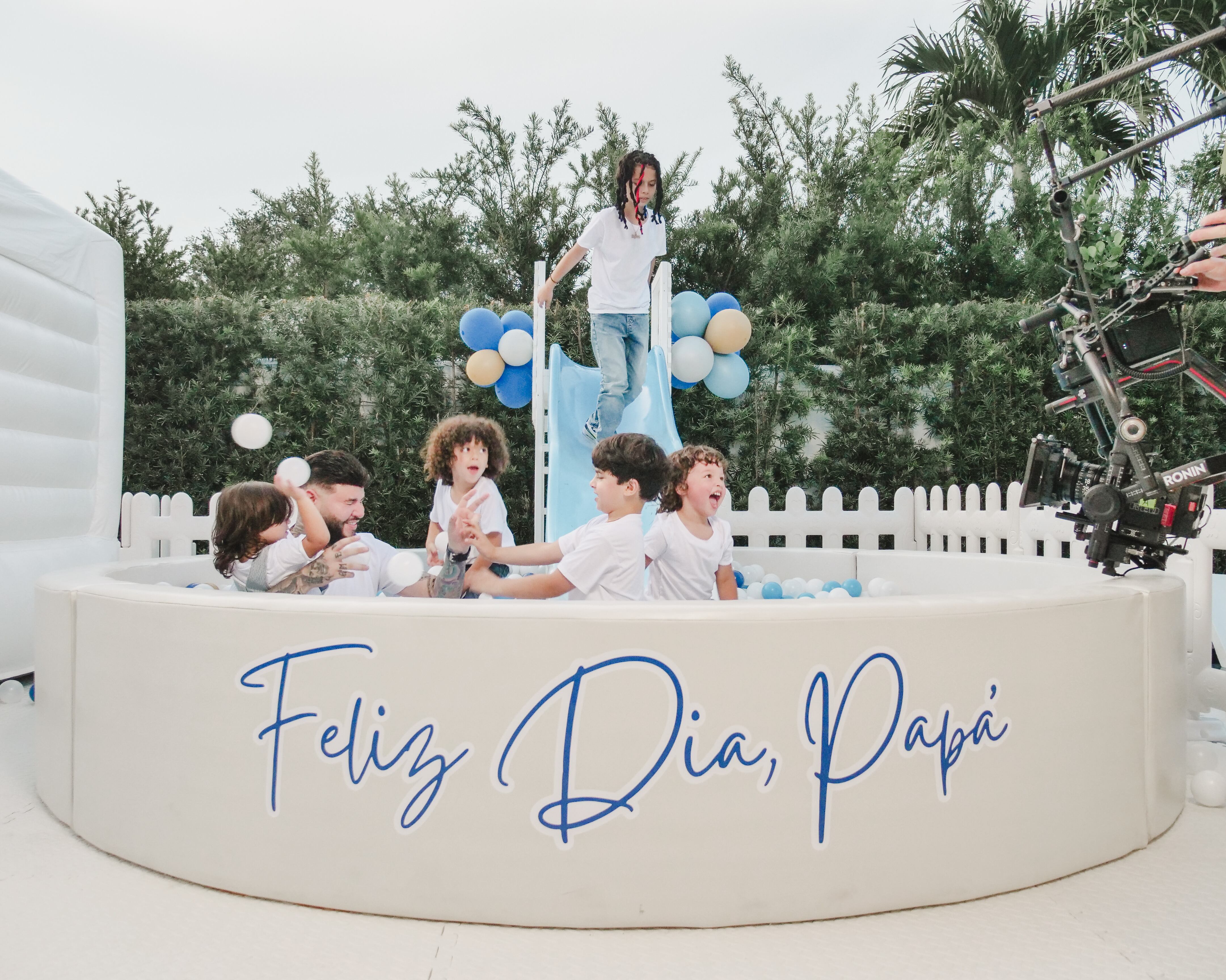 En las coloridas imágenes en una piscina llena de globos se escuchan, también, las voces de los menores.
