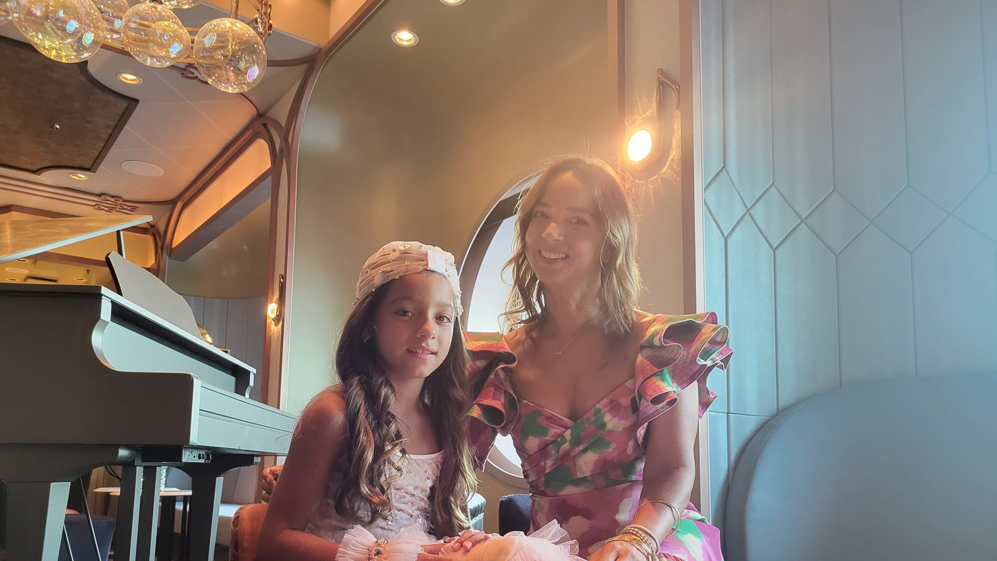 “Yo voy a viajar mucho tiempo con ella. A veces voy de un lugar al otro, del otro al otro y al otro. No paramos de viajar. Me encanta”, confesó la pequeña mientras intercambiaba miradas con su mamá, quien ayer tuvo un encuentro con la prensa como invitada especial del Disney Wish, la nueva embarcación de Disney Cruise Line.