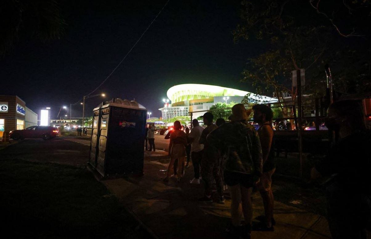 Varios baños portátiles fueron instalados esta noche en el área donde se está formando la fila para adquirir boletos para los conciertos de Bad Bunny que se llevarán a cabo los próximos 28, 29 y 30 de julio en el Coliseo de Puerto Rico.