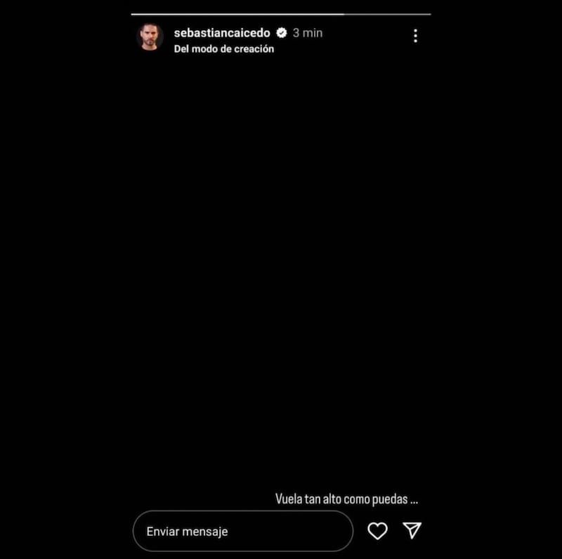 Después del mensaje de la barranquillera, Sebastián se limitó a colocar una historia con fondo negro y con una línea simple: “vuela tan alto como puedas…”.