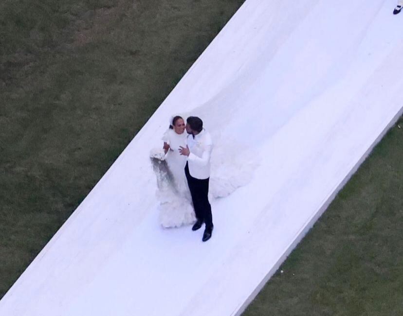 Todos ellos vestidos de blanco, igual que los invitados, quienes según Daily Mail recibieron a los novios al grito de “Bennifer”, como se conoce popularmente a la pareja.