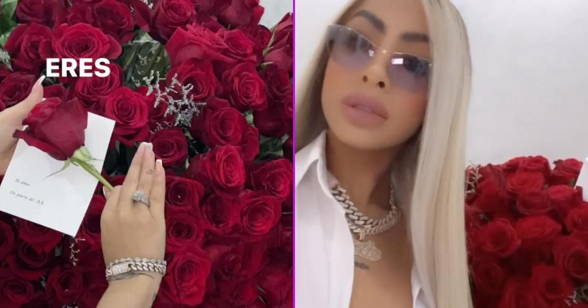 La rapera compartió por medio de su cuenta de Instagram, una historia donde presumió un enorme ramo de rosas, en el cual deja ver no solo la tarjeta con las iniciales de quien se lo envía, AA, sino también su anillo de casada, lo que representa un claro mensaje de que si había un problema, parece ser que ya ha sido resuelto.