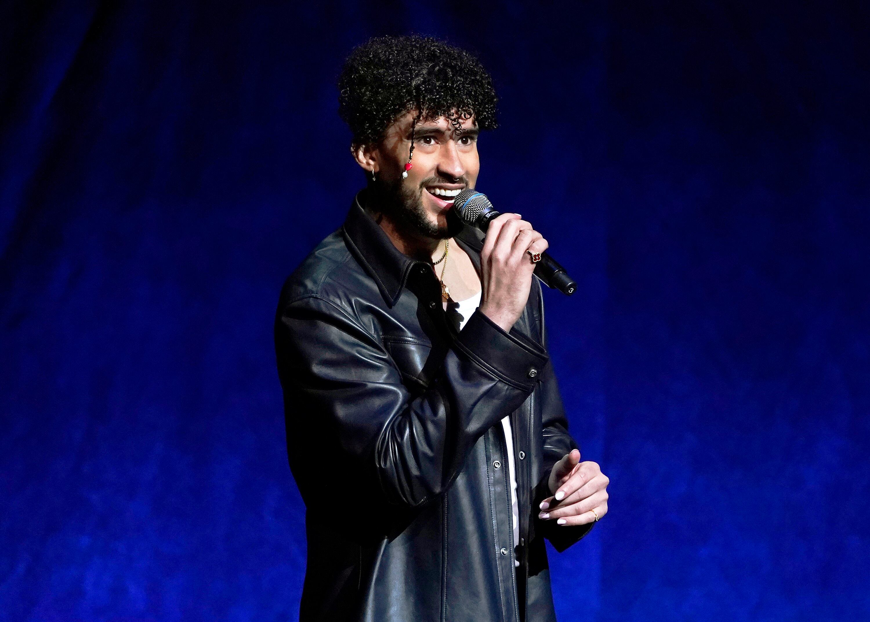 ARCHIVO - Bad Bunny habla en la presentación de Sony Pictures Entertainment en CinemaCon 2022, la convención de la Asociación Nacional de Propietarios de Cines de Estados Unidos en Las Vegas, el 25 de abril de 2022. La gira de Bad Bunny está en la cim AP (Chris Pizzello/Chris Pizzello/Invision/AP)