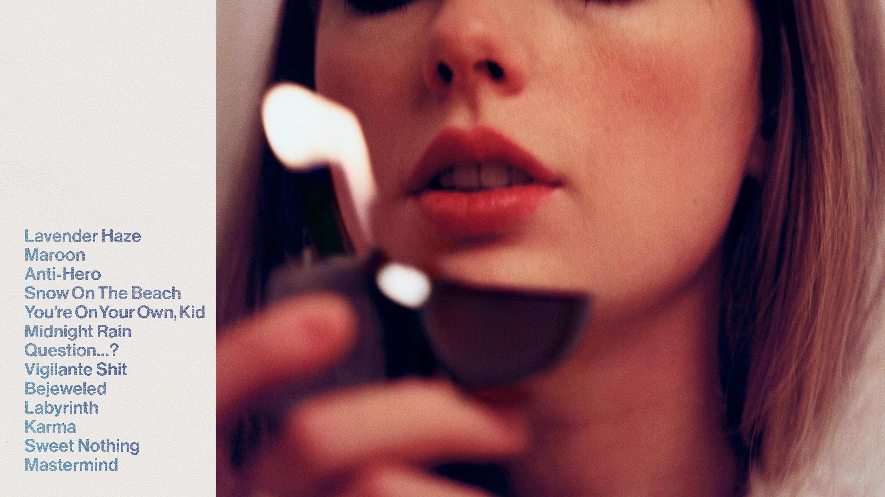 La primera canción, “Lavender Haze”, mezcla un poco de beat de club distorsionado y la voz aguda de Antonoff, con una melodía incitadora de Swift. “Maroon” es una versión más adulta y curtida de “Red”, una mirada a un amor perdido con descripciones de óxido, vino derramado y labial rojo — imágenes que Swift vuelve a conjurar, pero con más sabor en esta ocasión.