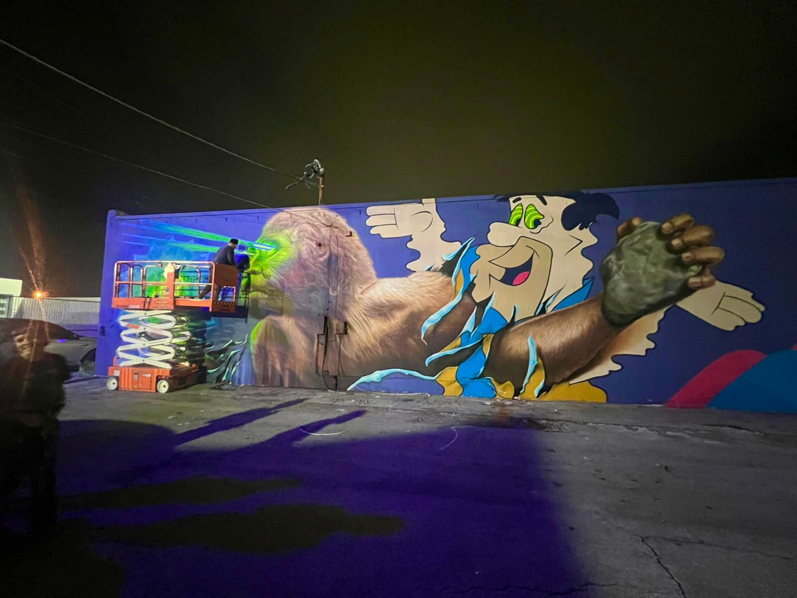 Salgado creó la obra “Eslabón perdido”, un mural de aproximadamente 15 x 60 pies, el cual fue elaborado con una técnica en aerosol y pintura de exterior. Este impactante mural está posicionado en la prestigiosa cervecería Wynwood Brewing Company, considerada la primera en la Ciudad del Sol.