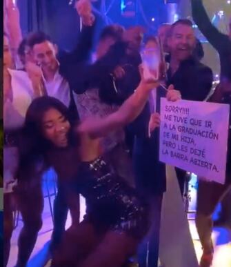 “Sorry, me tuve que ir a la graduación de mi hija, pero les dejé la barra abierta”, lee el cartel de Normando Valentín.
