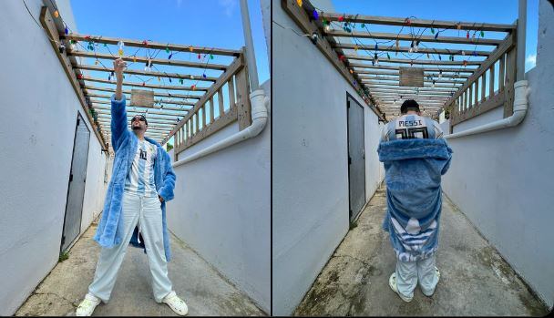 Luego del resultado, el cantante de música urbana publicó en la red social, Twitter, una foto donde se la veía luciendo la camiseta de la selección argentina con el número 10 del capitán, Lionel Messi.