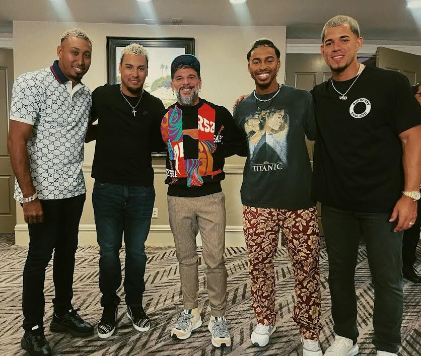 En la fotografía suministrada a este medio, se puede ver al intérprete de “Calma” junto a las estrellas boricuas Francisco Lindor, Edwin Sugar Díaz, Javier Báez y José Berríos.