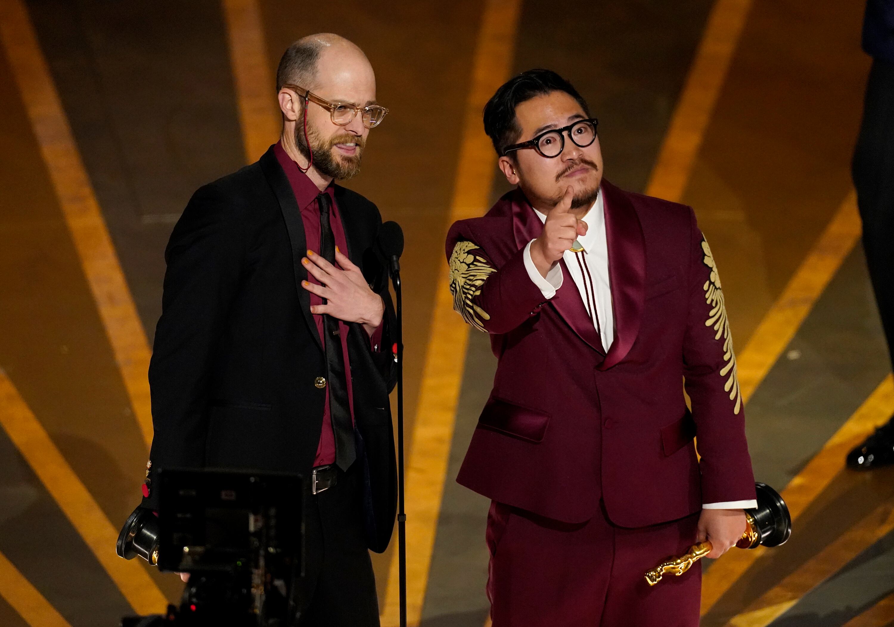 En triunfos que estaban previstos el domingo, pero que quizás hace un año parecían una fantasía de ciencia ficción, Daniel Kwan y Daniel Scheinert se alzaron el domingo por la noche con el Oscar a mejor dirección y a mejor guion original, dos de siete premios que conquistó su drama de multiversos. The Daniels superaron a un grupo de cineastas talentosos que incluía a Steven Spielberg en ambas categorías.