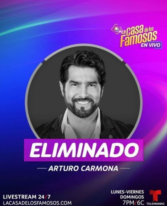 El actor mexicano Arturo Carmona se convirtió hoy, lunes, en el noveno habitante eliminado de la tercera temporada de “La casa de los famosos” (Telemundo).
