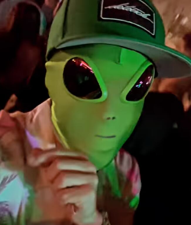 El locutor, actor y comunicador puertorriqueño, Jorge Pabón, mejor conocido como Molusco, se puso una máscara de extraterrestre para poder disfrutar tranquilamente del concierto de Rauw Alejandro.