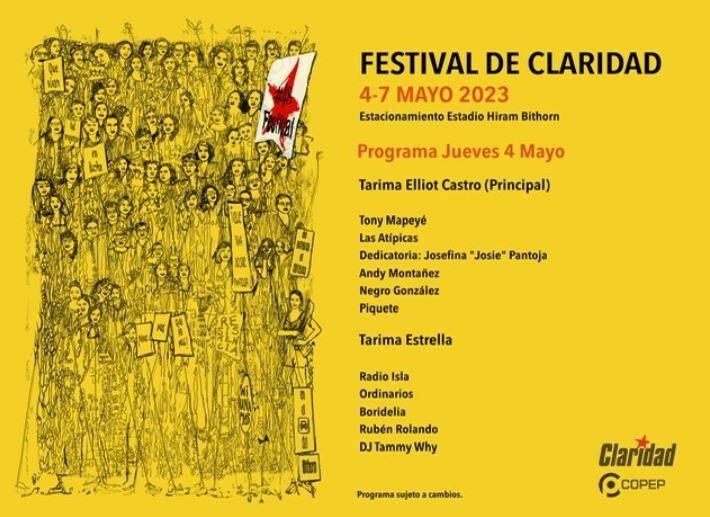 La cuadragésimaoctava edición del Festival de Claridad se celebrará del 4 al 7 de mayo en los predios del estacionamiento del estadio Hiram Bithorn, espacio que ha sido sede del evento cultural por los pasados 20 años.