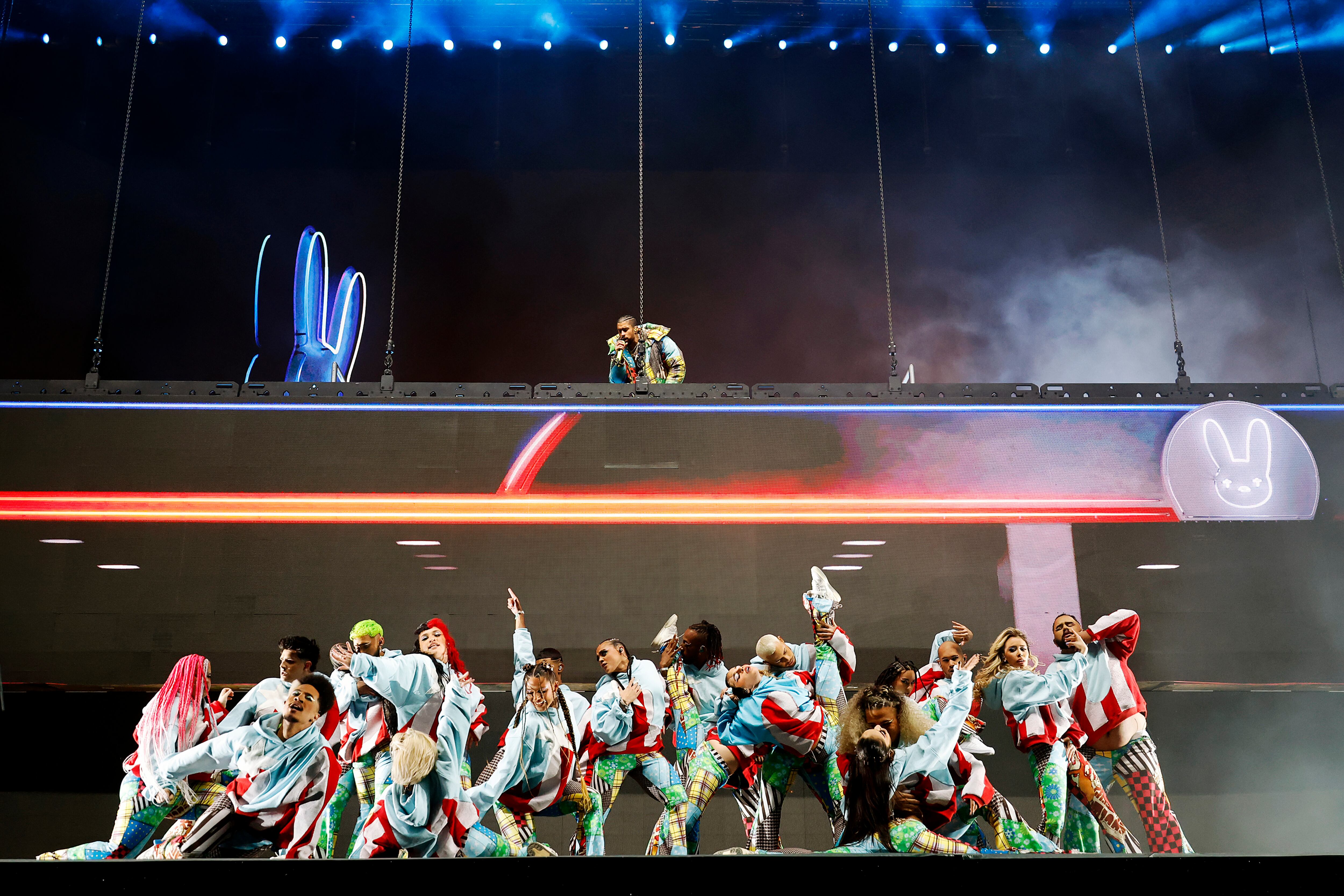 Bad Bunny cantó su éxito “Moscow Mule” además de “A tu merced”, “Titi Me Preguntó” y tuvo varios invitados en tarima como Post Malone y el dúo Jowell & Randy le pusieron ritmo a la presentación con “Safaera”. La presentación duró alrededor de una hora.