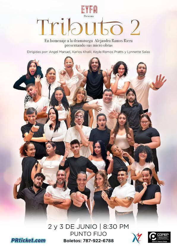 Cerca de una treintena de actores en desarrollo de la escuela de Estudio y Formación Actoral By Angel Manuel y Karlos Khalil (EYFA) presentan el espectáculo “Tributo 2″, donde el público disfrutará de más de 10 piezas de microteatro basadas del libro “En la Azotea” de la dramaturga puertorriqueña Alejandra Ramos Riera. Las funciones se realizarán este viernes, 2 y sábado, 3 de junio de 2023, a las 8:30 de la noche, en el café teatro Punto Fijo del Centro de Bellas Artes de Santurce.