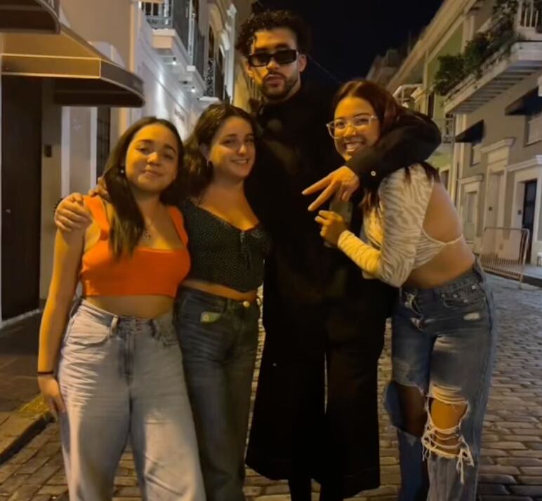 Un grupo de jóvenes compartió a través de las redes sociales su encuentro en el Viejo San Juan con el cantante y rapero puertorriqueño, Benito Antonio Martínez Ocasio, mejor conocido como Bad Bunny.