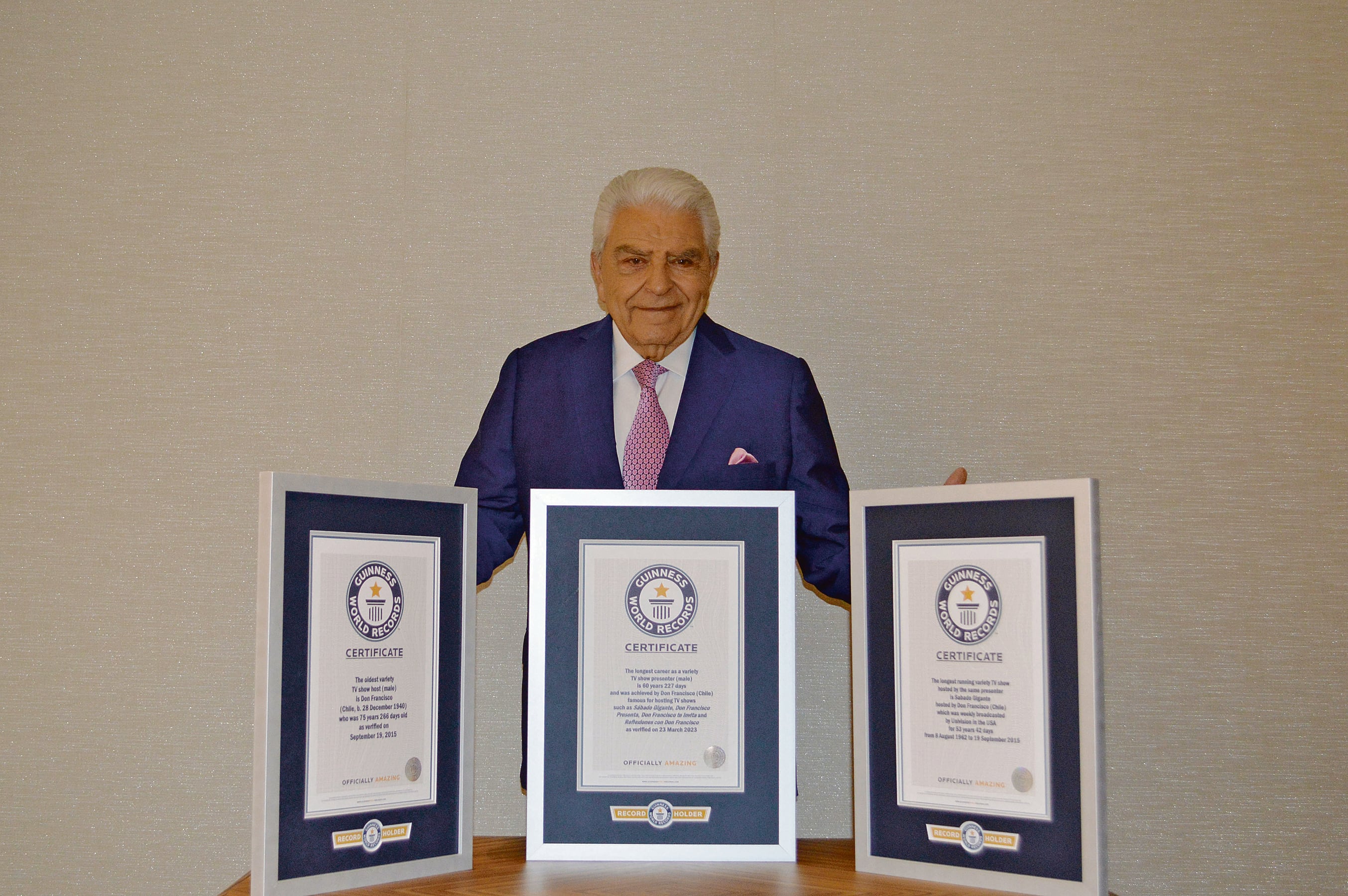 El Guinness World Records (GWR), la autoridad mundial en récords, confirmó que el presentador tiene dos nuevas marcas: el conductor de programas de televisión de variedades de más edad (82 años) y la carrera profesional más larga como presentador de programas de televisión de variedades (60 años).