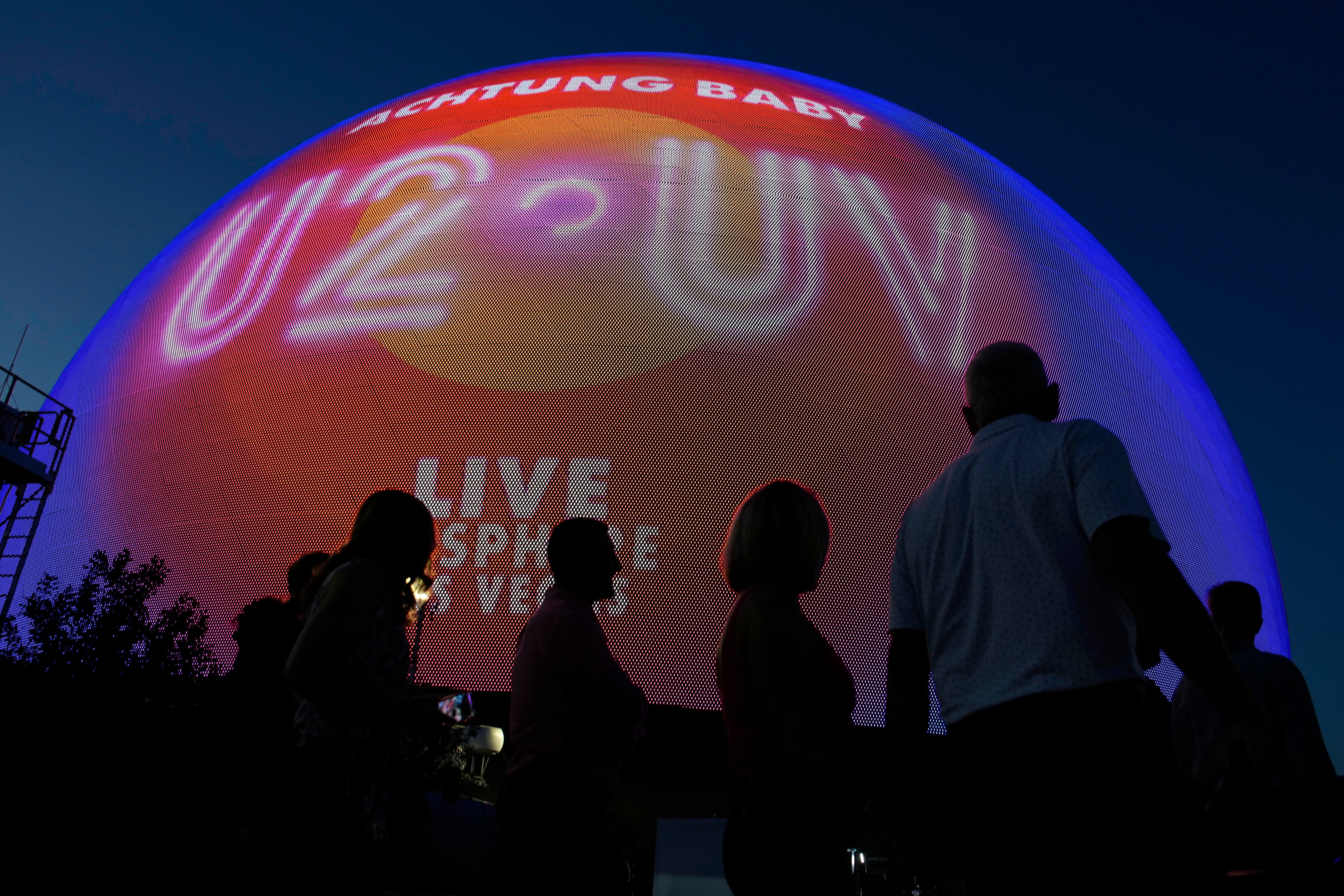 U2 hizo sentir su presencia en el Sphere de 2.300 millones de dólares, que tiene 366 pies de alto y 516 pies de ancho. Con magníficos efectos visuales, la residencia de 25 shows de la banda comenzó a lo grande interpretando una serie de éxitos que incluyen “Mysterious Ways”, “Zoo Station”, “All I Want is You”, “Desire” y el nuevo sencillo “Atomic City”.