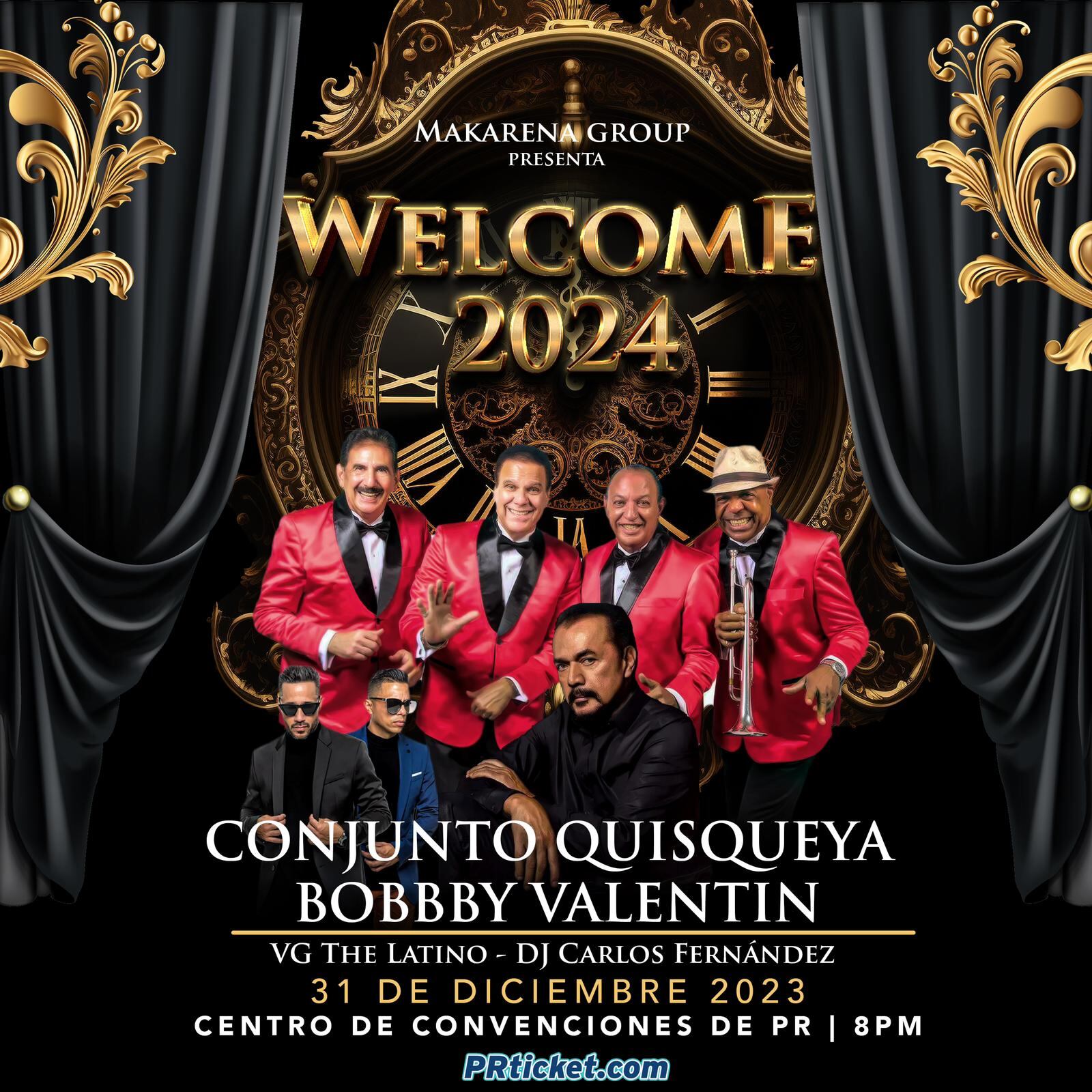 Se unen grandes exponentes de la música. Desde República Dominicana, El Conjunto Quisqueya, además Fania All Star, el rey del bajo Bobby Valentin y su Orquesta, quienes llevan más de 25 años sin despedir el año en Puerto Rico. Entre otros artistas estará la Orquesta VG the Latin y desde la Mega Estación nuestro Dj Carlos Fernández con la mejor música bailable.