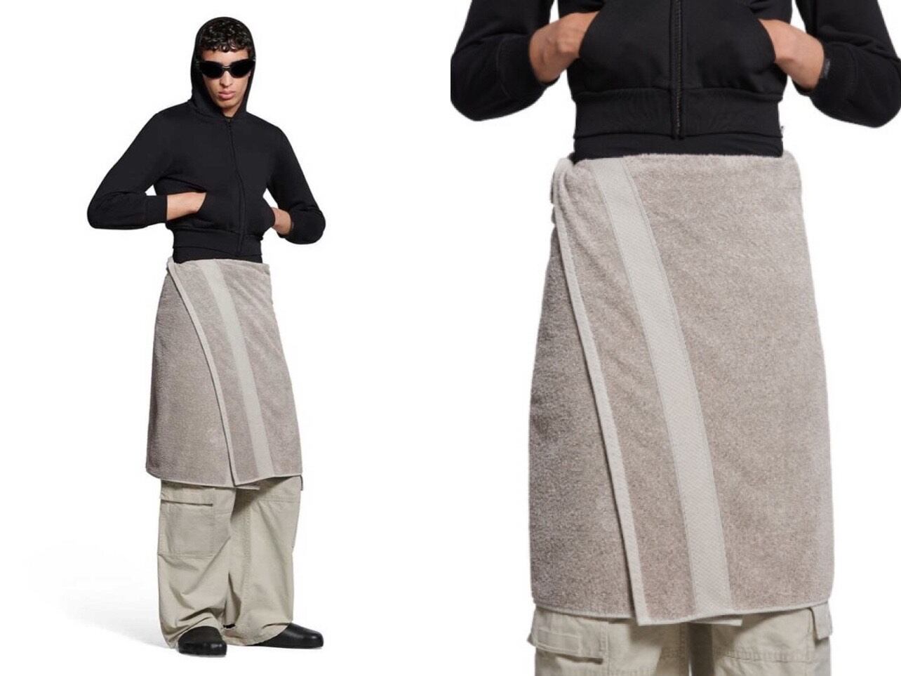 Si pensabas que ya lo habías visto todo, ¡Balenciaga lo volvió a hacer! La casa de moda de lujo española lanzó al mercado una falda con aspecto de toalla de baño como parte de la colección “Resort 2024″.