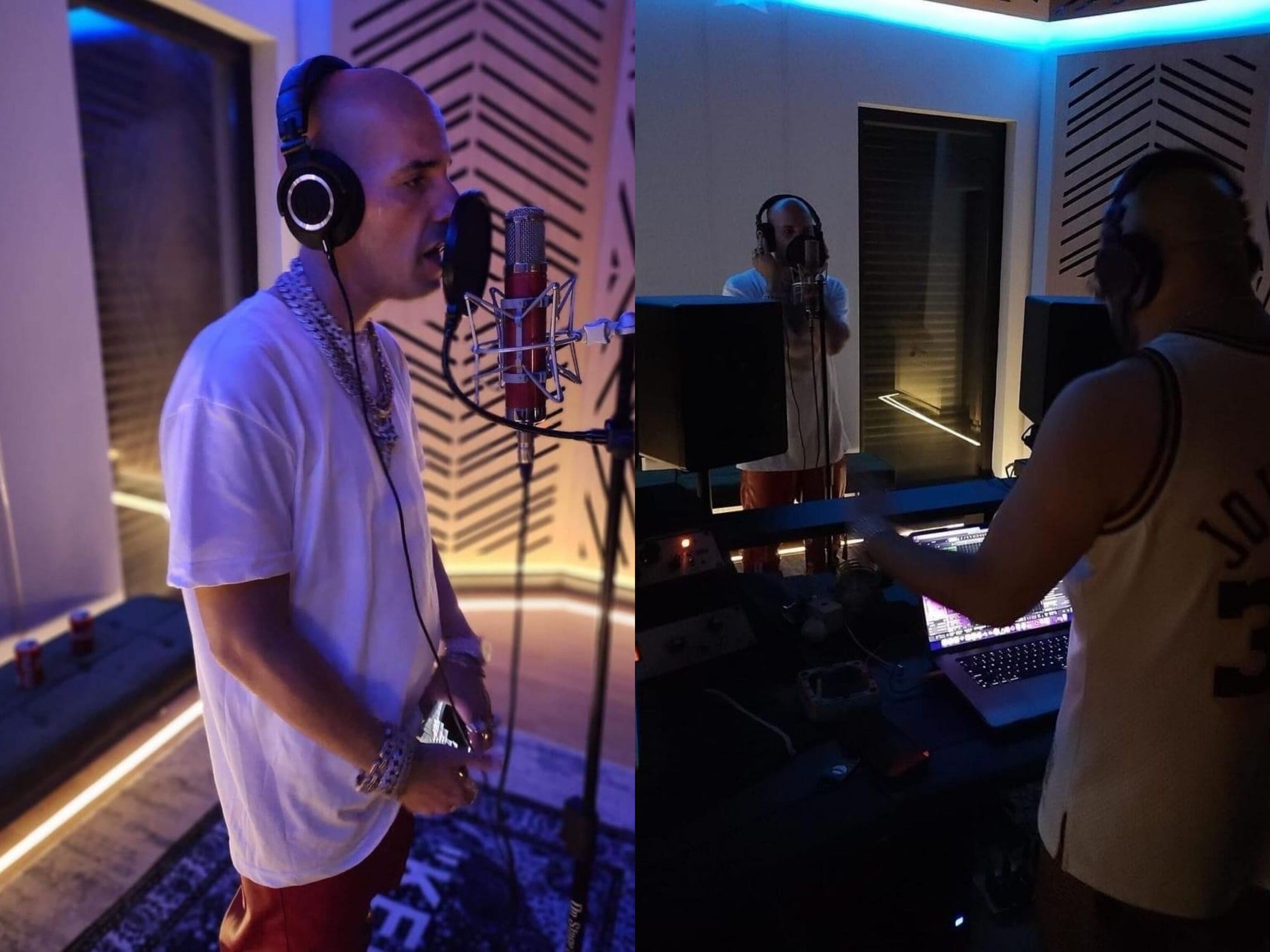 “De vuelta al estudio con la fuerza de Dios”, es el escrito que acompaña las cuatro imágenes que publicó en la red social propiedad de “Meta”, donde se le ve acompañado de los cantantes Juanka El Problematik y Luar la L.