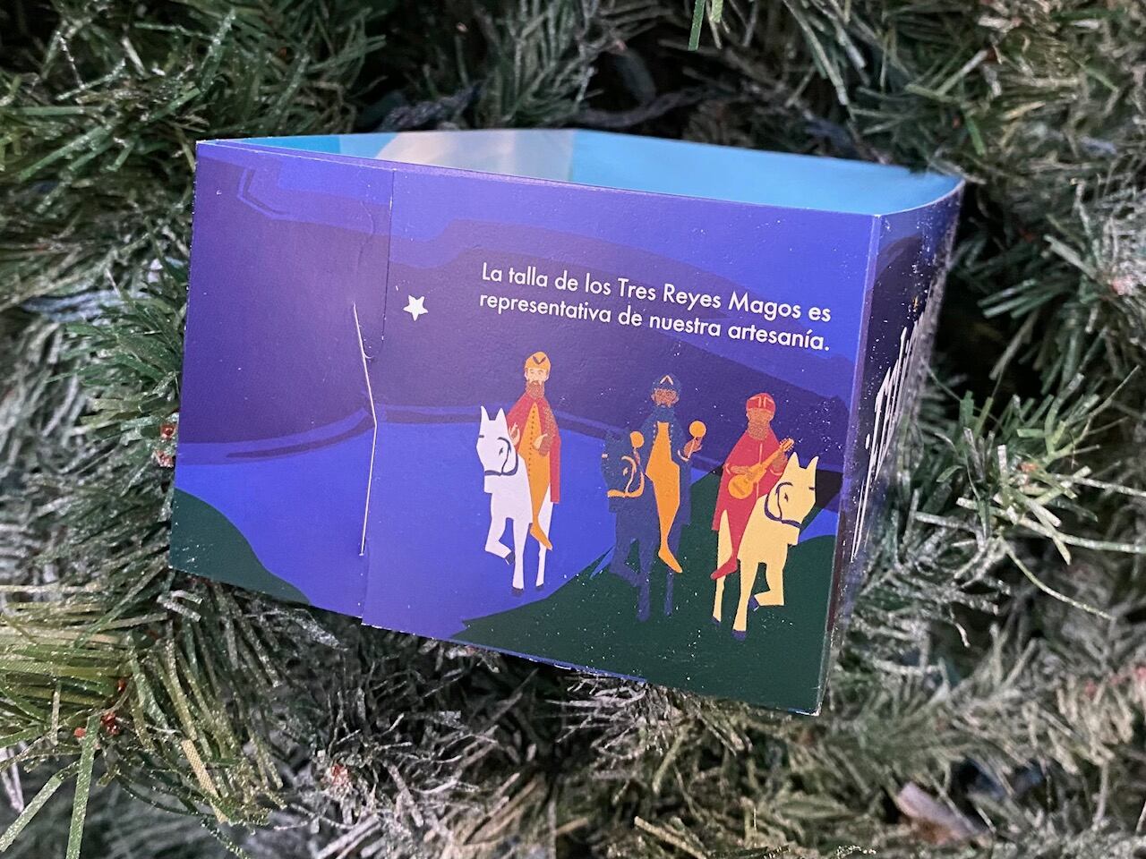 Cada una de las cajitas presenta paisaje alusivo a las casas de madera en las montañas de Puerto Rico complementado con una representación de la tradicional talla de reyes a caballo, una de las más representativas de la artesanía puertorriqueña. Otros elementos distintivos que se pueden apreciar en el exterior de las cajas son los instrumentos musicales como el tiple, maracas y güiro en sustitución de la mirra, incienso y oro. Con todos estos elementos, se busca educar a los niños y niñas sobre las tradiciones navideñas en Puerto Rico y la imaginería que la representa.