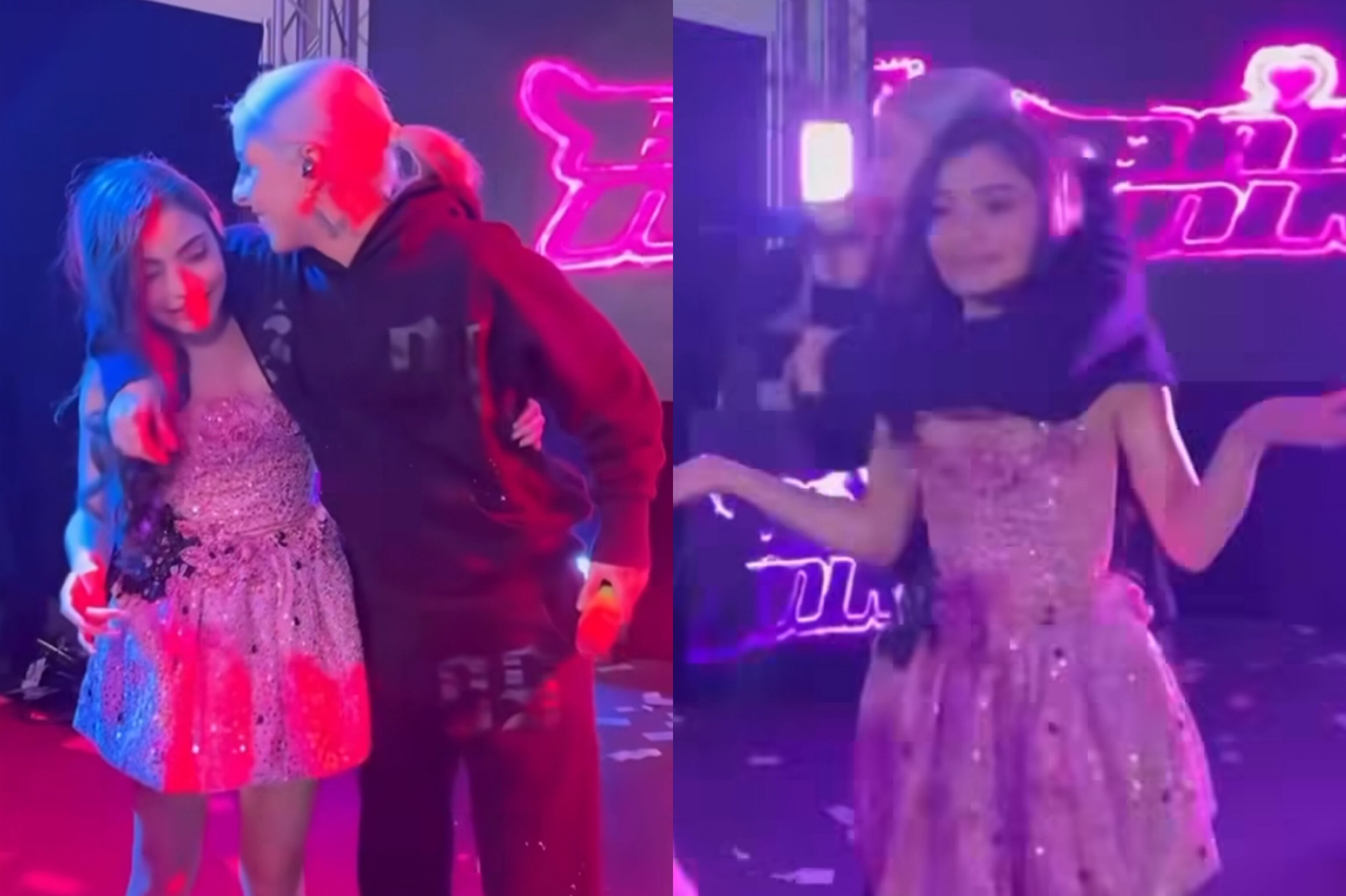 En un video viralizado en las redes sociales, se puede apreciar a Angélica Lucero Santos Figueroa taparse los ojos mientras se encontraba en una tarima. Acto seguido, la intérprete de “Riri” la sorprendió por la espalda, dándole un abrazo.