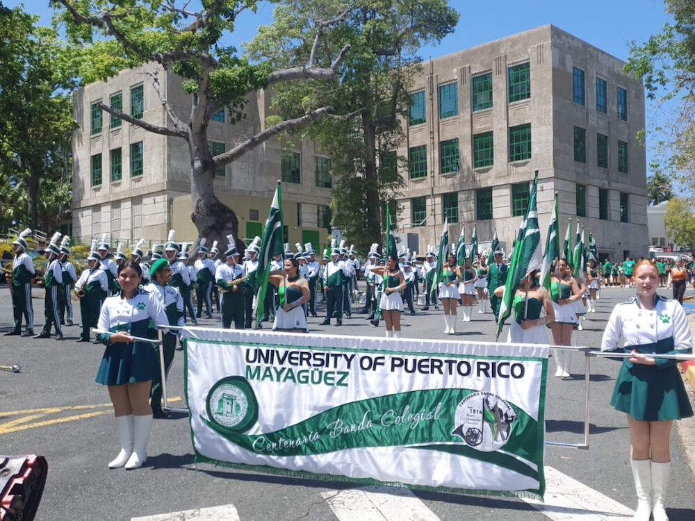 La Banda de Marcha colegial se originó en el año 1914 como parte del Cuerpo de Adiestramiento para los Oficiales de la Reserva (ROTC) en el otrora Colegio de Agricultura y Artes Mecánicas. Entre sus más destacados miembros figuran el maestro Roselín Pabón, director emérito de la Orquesta Sinfónica de Puerto Rico; el exalcalde de Cabo Rojo, Santos “El Negro” Ortiz; y la veterana periodista Luz Nereida Vélez, quien formó parte de las Abanderadas cuando se les conocía como las Batuteras de la Banda.