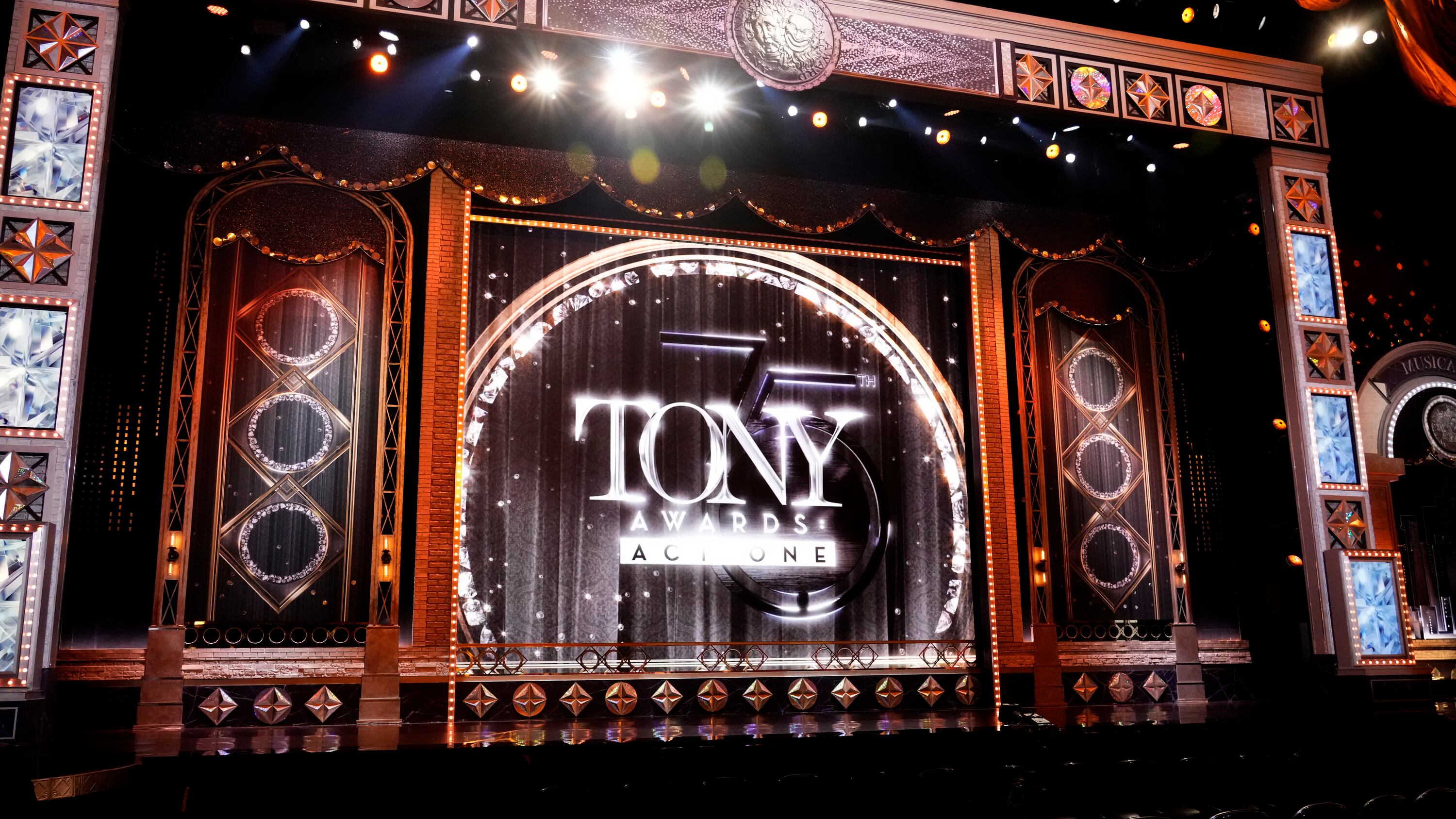 FILE - El escenario antes del inicio de la 75.ª entrega anual de los premios Tony el 12 de junio de 2022 en Nueva York. La 76.ª entrega anual de los premios Tony se transmitirá en vivo desde el United Palace en Nueva York el domingo 11 de junio de 2023 AP (Charles Sykes/Charles Sykes/Invision/AP)