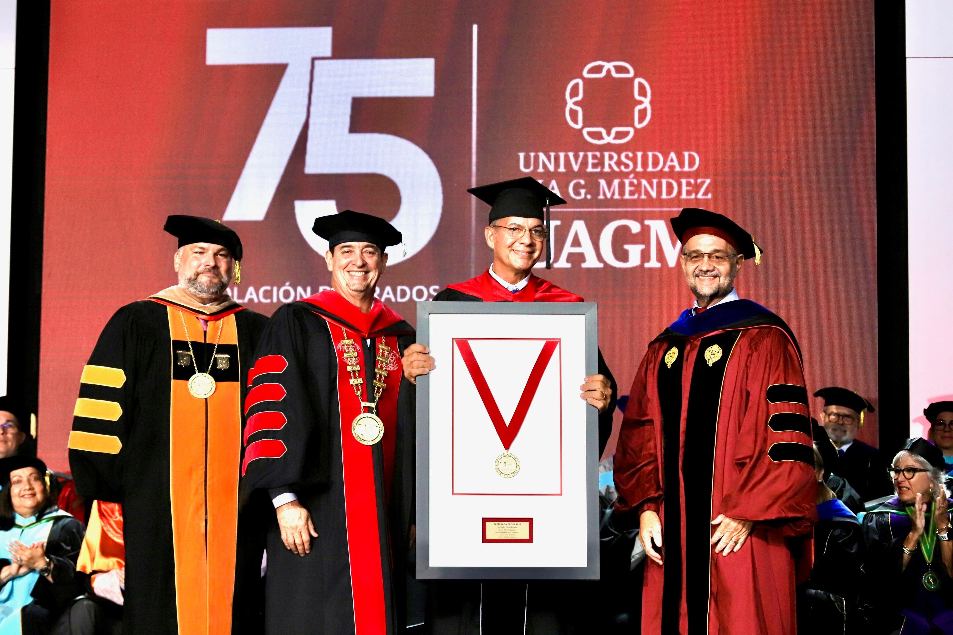 En los actos de la mañana, se le confirió la medalla presidencial a Roberto Cortés, egresado del Recinto de Cupey de la UAGM y presentador de La Autoridad del Tiempo de Telenoticias, Telemundo de Puerto Rico. Asimismo, en la tarde, el Chef Iván Clemente, fundador del Comedor de la Kennedy, fue el recipiente del reconocimiento. Esta medalla reconoce la labor y las contribuciones extraordinarias de aquellos que han demostrado con sus acciones una aportación significativa a la educación, a preservar los más altos valores del ser humano y al bienestar general de nuestro pueblo.