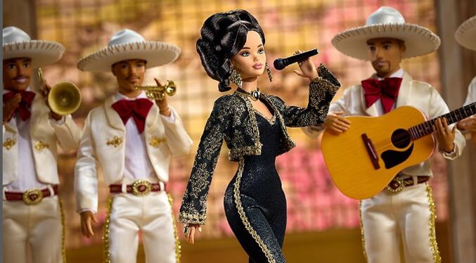 La muñeca Barbie luce una chaqueta tipo bolero inspirada en la que lució en su emblemático concierto de 1990 en El Palacio de Bellas Artes. El borde dorado se inspira en los coloridos trajes de mariachi que suele llevar en el escenario ‘Juanga’, el apodo cariñoso que le dan sus fans a este exitoso compositor y estrella del pop”, expuso la empresa juguetera.