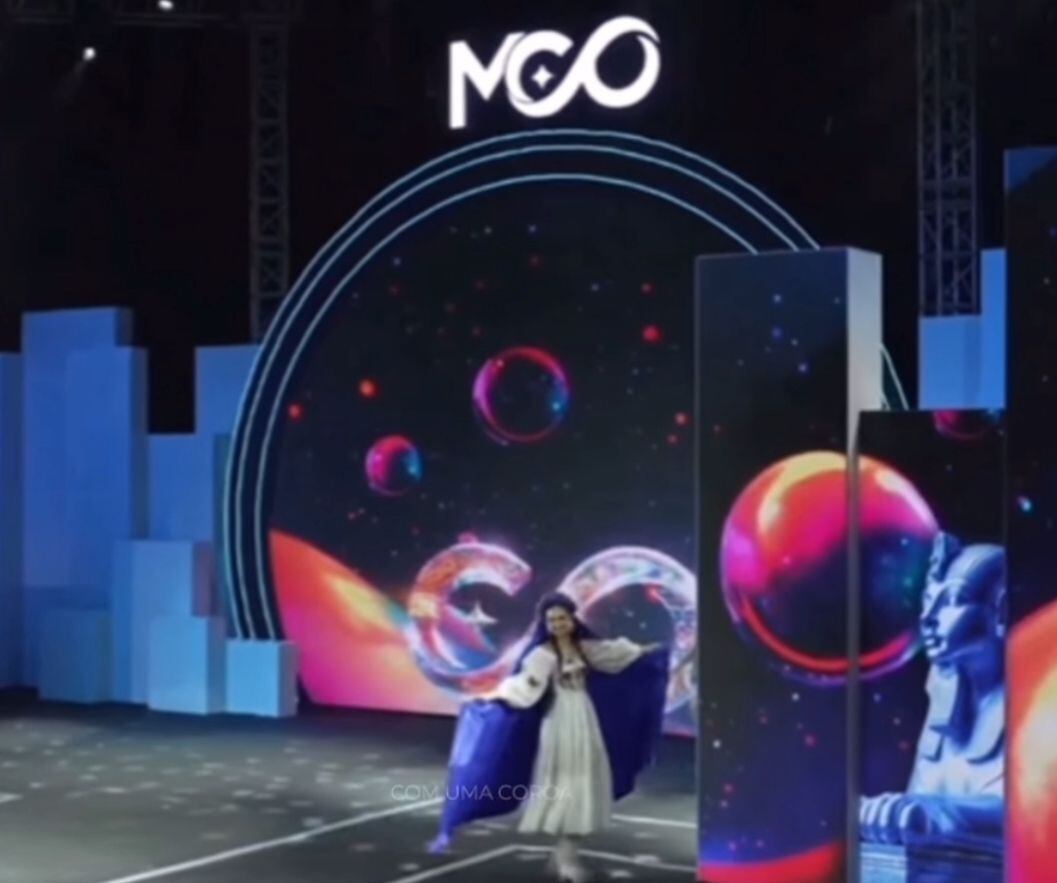 El desfile de trajes nacionales, típicos o de fantasía de la primera edición del certamen Miss Cosmo contó con el accidente de una de las candidatas de la competencia que se celebra en Vietnam.
