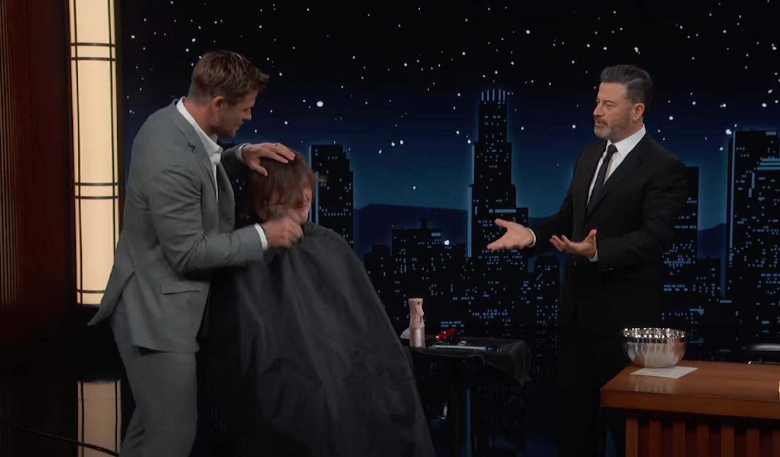 Kimmel elogió a Hemsworth por su inesperado talento para cortar el cabello.
