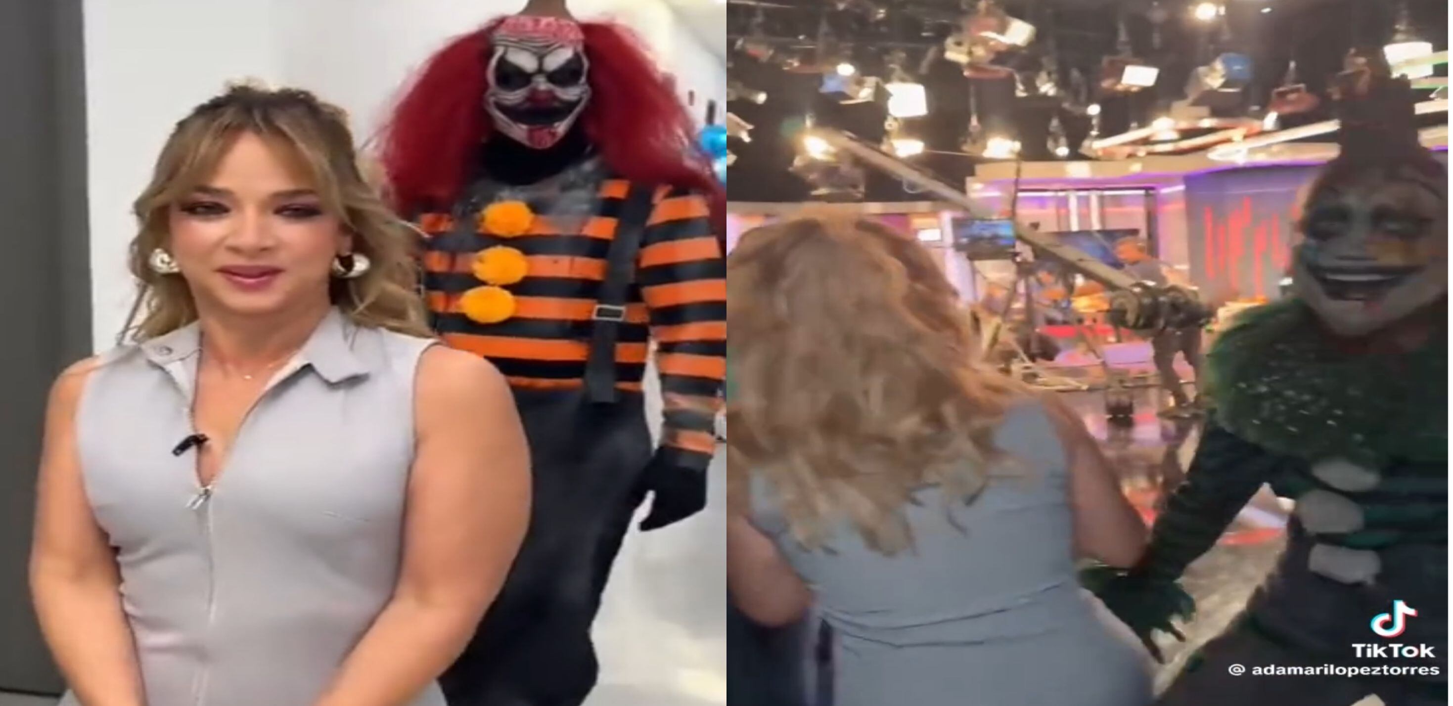 Mientras la boricua se dirigía al estudio del programa “¡Siéntese Quien Pueda!”, un hombre vestido de un terrorífico payaso la sorprendió y la asustó.