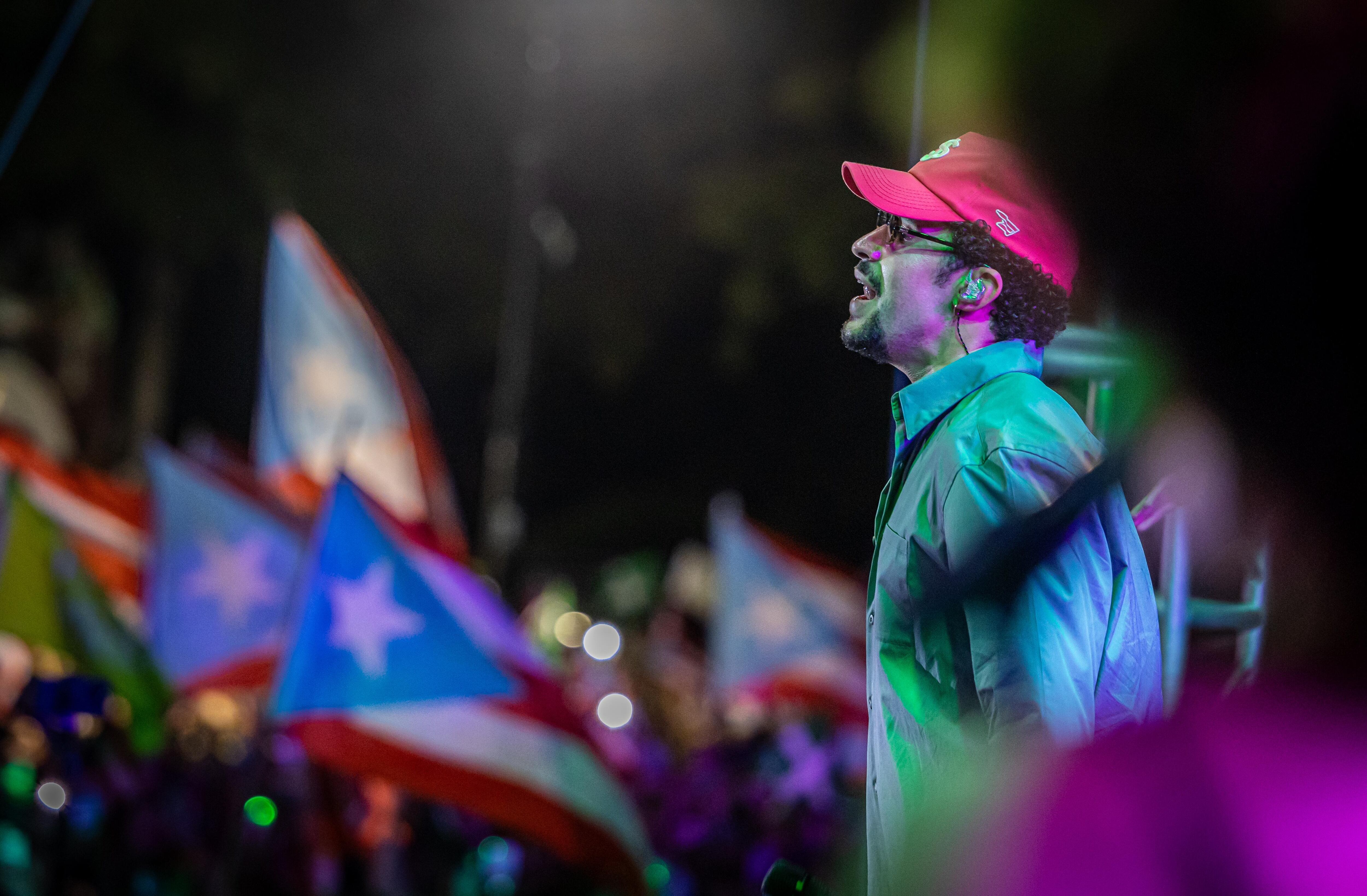 Benito “Bad Bunny” Martínez Ocasio pidió en la noche del domingo un voto por Juan Dalmau Ramírez y la Alianza PIP-MVC, durante su participación en el cierre de campaña denominado Festival de la Esperanza, en el lote 4 cerca del Centro de Convenciones Pedro Rosselló en Santurce.