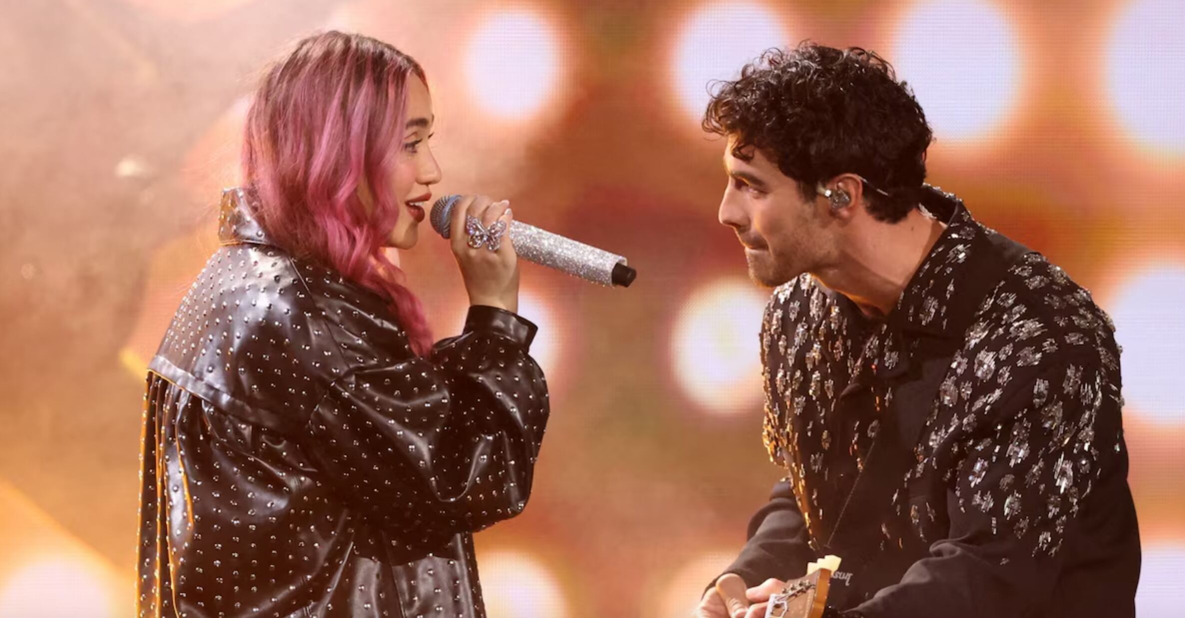 Los dos artistas lucieron atuendos en tonos negro y plateado, mientras sus voces se fusionaban en una interpretación vibrante tanto en inglés como en español.