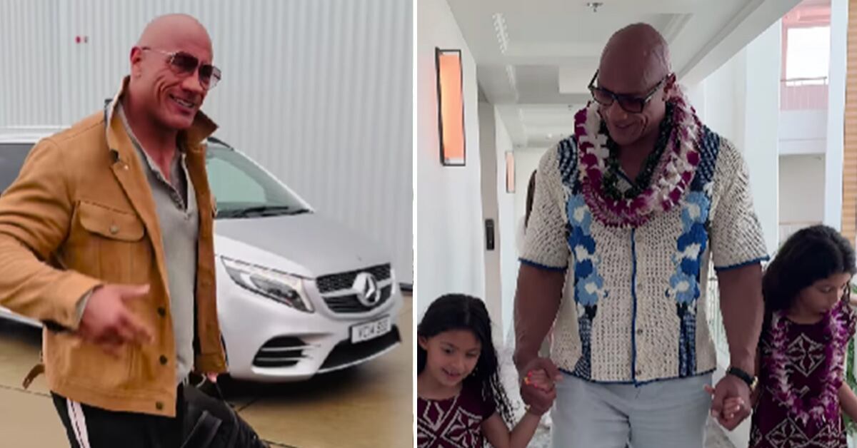 A través de las redes se han filtrado algunas imágenes de Dwayne Johnson convertido en Maui mientras graba escenas para la película de Disney en la playa.