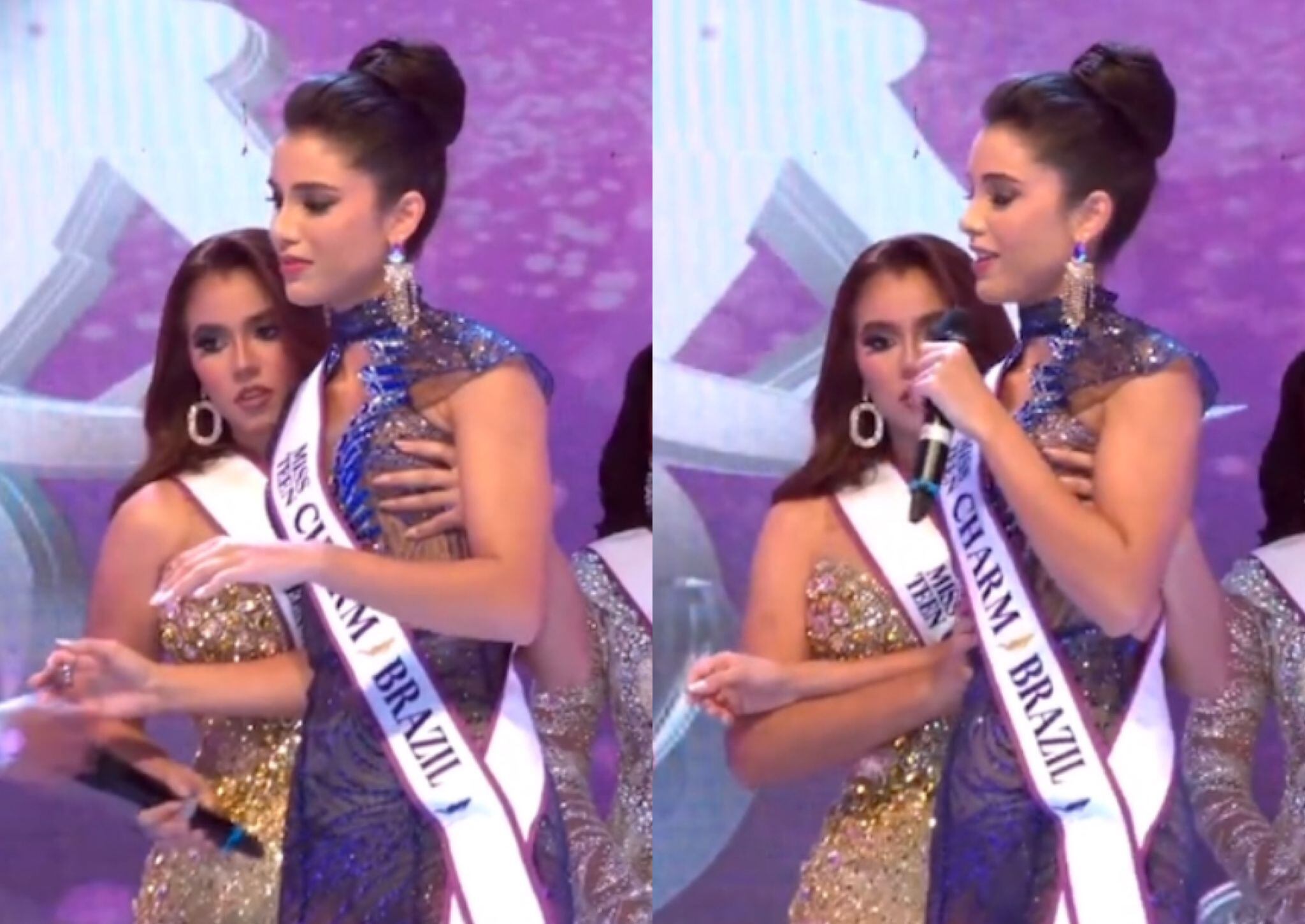 En el primer traspié que sufrió Miss Teen Charm Brasil, la delegada de Puerto Rico, Dianisse Figueroa Rivera, no dudó en ayudar a su compañera en el lamentable momento.