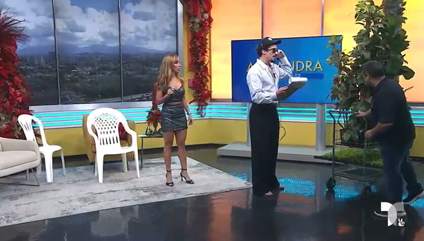 En esta ocasión, el artista puertorriqueño hizo una aparición en el programa Alexandra a las 12 de Telemundo y sorprendió a la animadora Alexandra Fuentes con un cambio en la escenografía del espacio televisivo.