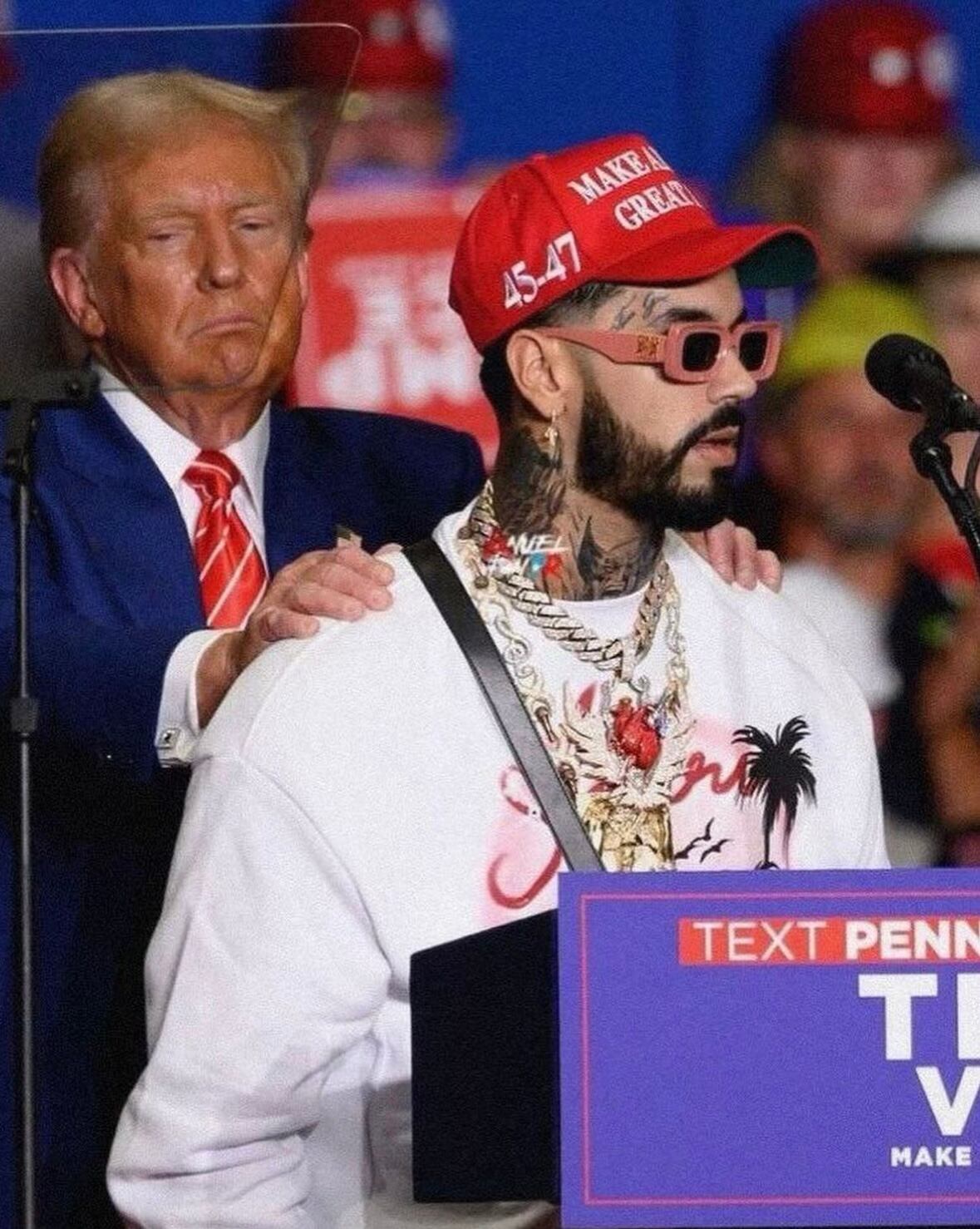 El artista estuvo acompañado en la noche de ayer por el también cantante boricua Justin Rafael Quiles Rivera, conocido artísticamente como “Justin Quiles”, quien también mostró su apoyo hacia Trump.