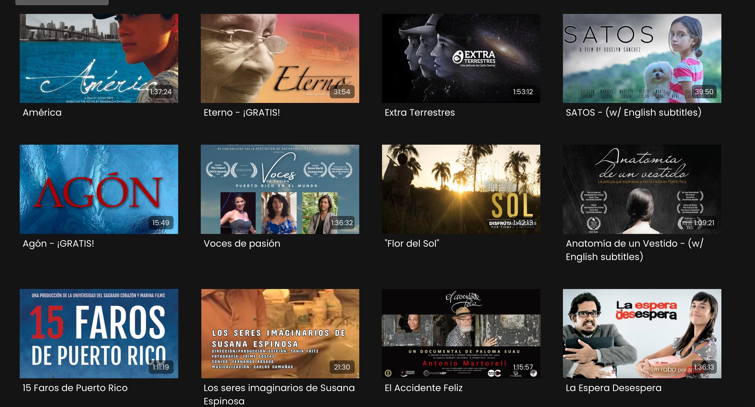 Entre las producciones incluidas en esta colección se encuentran películas como: América, dirigida por Sonia Fritz, Extra Terrestres, dirigida y producida por Carla Cavina, La Espera Desespera dirigida por Coraly Santaliz, Anatomía de un Vestido, dirigida y producida por Flora Pérez Garay, entre muchas otras producciones.