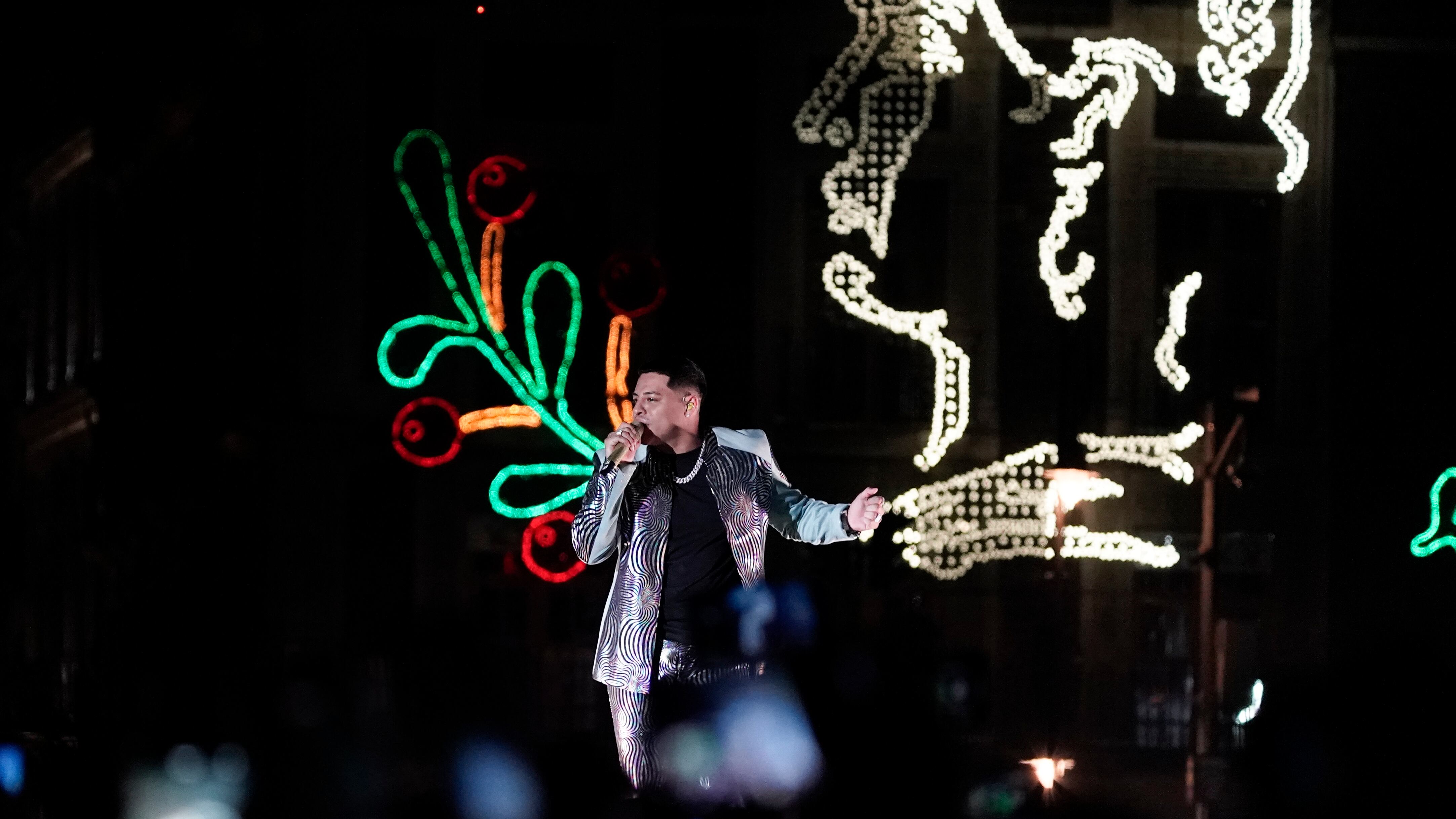 GRUPO FIRME ARCHIVO - El vocalista Eduin Caz, de la banda regional mexicana Grupo Firme, durante un concierto gratuito en el Zócalo de la Ciudad de México, el 25 de septiembre de 2022. (Foto AP/Eduardo Verdugo, archivo) (Eduardo Verdugo/AP)