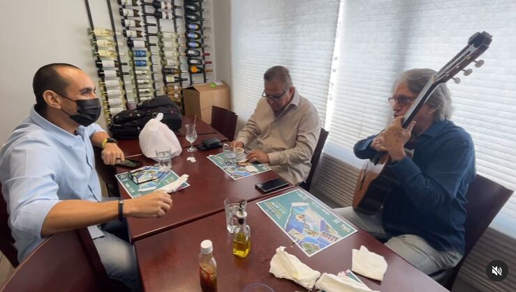 Delgado compartió en sus redes sociales el video donde aparece sentado en la mesa de un local junto a José Nogueras y el trompetista Luis Perico Ortiz.