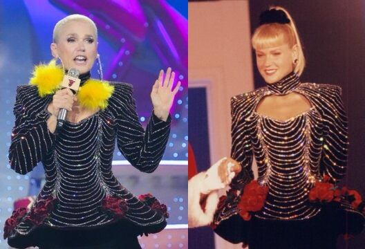 Xuxa y su "Ilarie" en el aniversario de TV Globo Xuxa y su "Ilarie" en el aniversario de TV Globo luciendo un traje de su brillante época (Captura de pantalla)