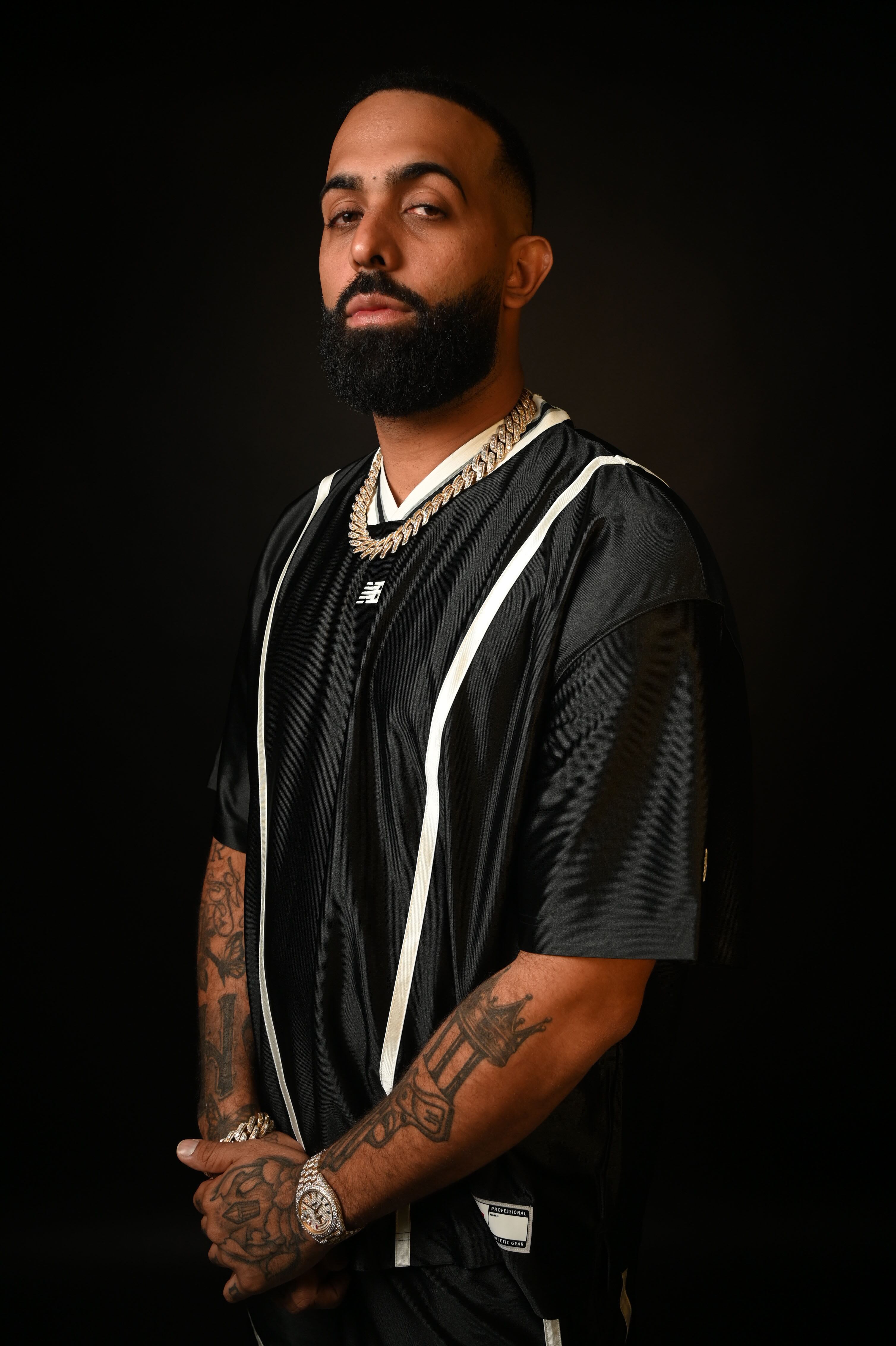 El rapero también es un hijo nostálgico. Recuerda las tardes de telenovelas junto a su abuela —un truco casero para perfeccionar el español— y las sesiones de colección de cartas de Pokémon con su papá. Tradiciones pequeñas que dejan grandes recuerdos, y ahora sueña replicar esos momentos especiales con sus gemelos.