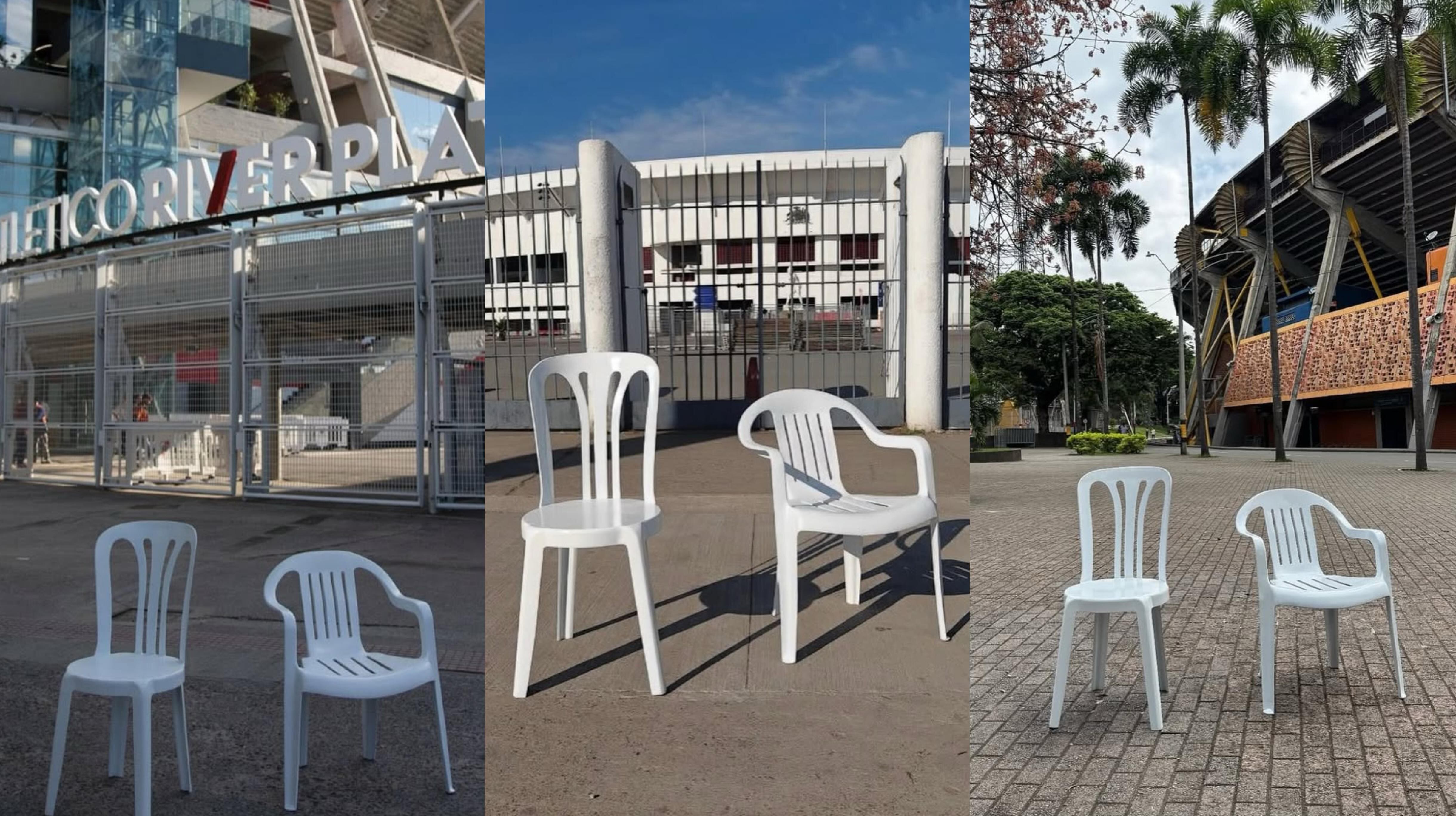Las icónicas sillas blancas asociadas al sexto álbum de estudio de Bad Bunny, “Debí Tirar Más Fotos” (DtMF), están apareciendo frente a estadios de Latinoamérica y Europa.