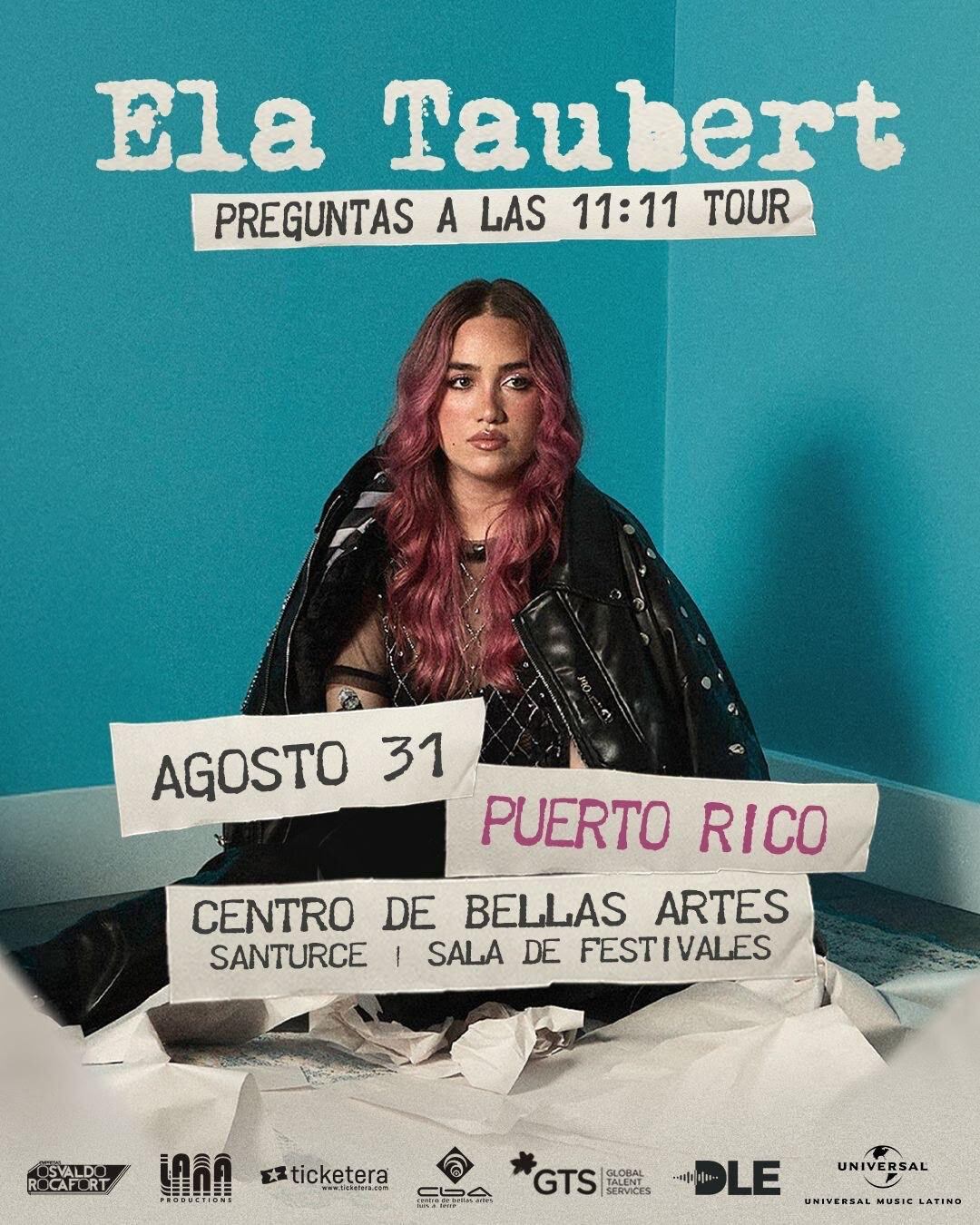 La cantautora colombiana Ela Taubert, una de las voces emergentes más poderosas del pop en español, llega a Puerto Rico el 31 de agosto de 2025, con su “Preguntas a las 11:11 Tour” que coincide con el lanzamiento del álbum homónimo.