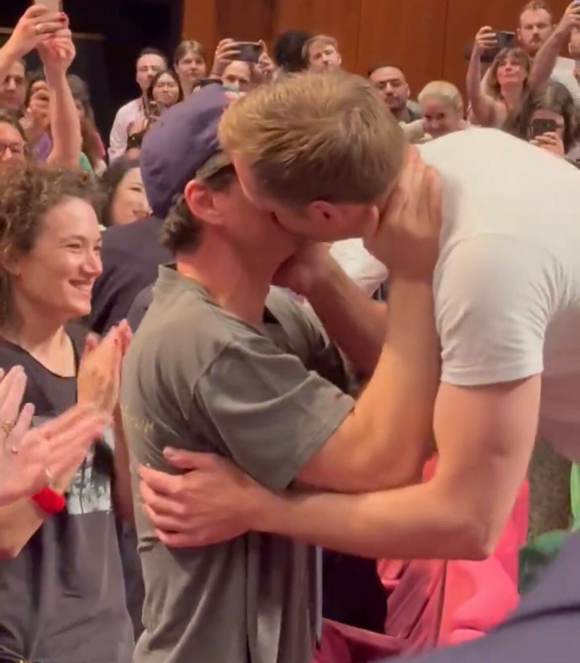 Tras la visualización del filme y la ovación, que duró más de siete minutos, los dos actores se fundieron en un cálido abrazo que concluyó en un beso que ha enternecido el corazón de muchos fans, tal y como admiten en las redes sociales.