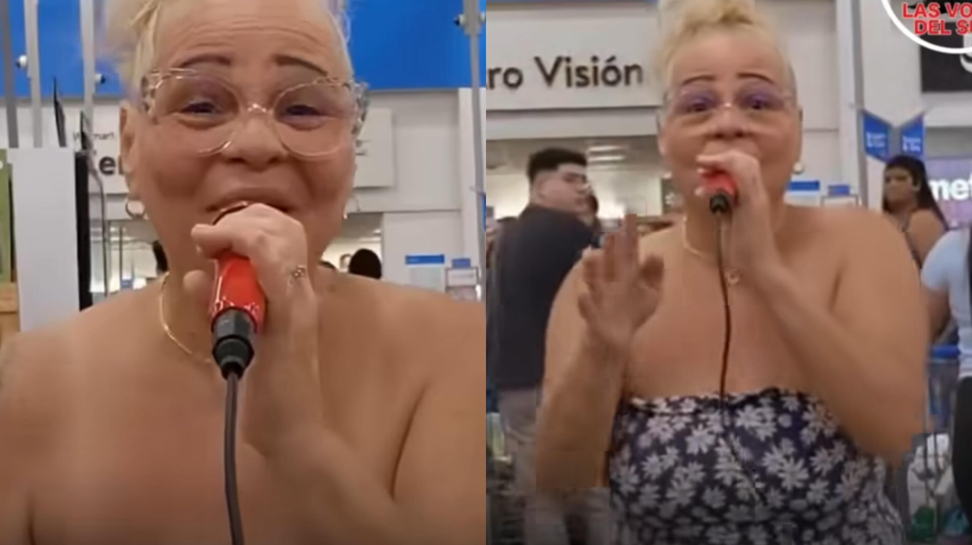 En otro video que también circula por las plataformas sociales se puede apreciar a la fémina en el área de electrónica cantando “Confieso” de Kany García.