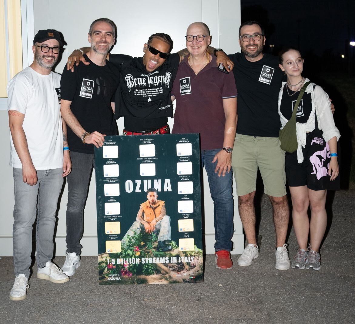 Antes de subir al escenario, Ozuna fue sorprendido con un disco conmemorativo por haber superado los 1.5 billones de reproducciones en Italia, reafirmando su impresionante alcance internacional y el cariño del público italiano. El reconocimiento fue entregado por representantes de su sello discográfico y plataformas digitales, destacando su impacto sostenido en el mercado europeo.