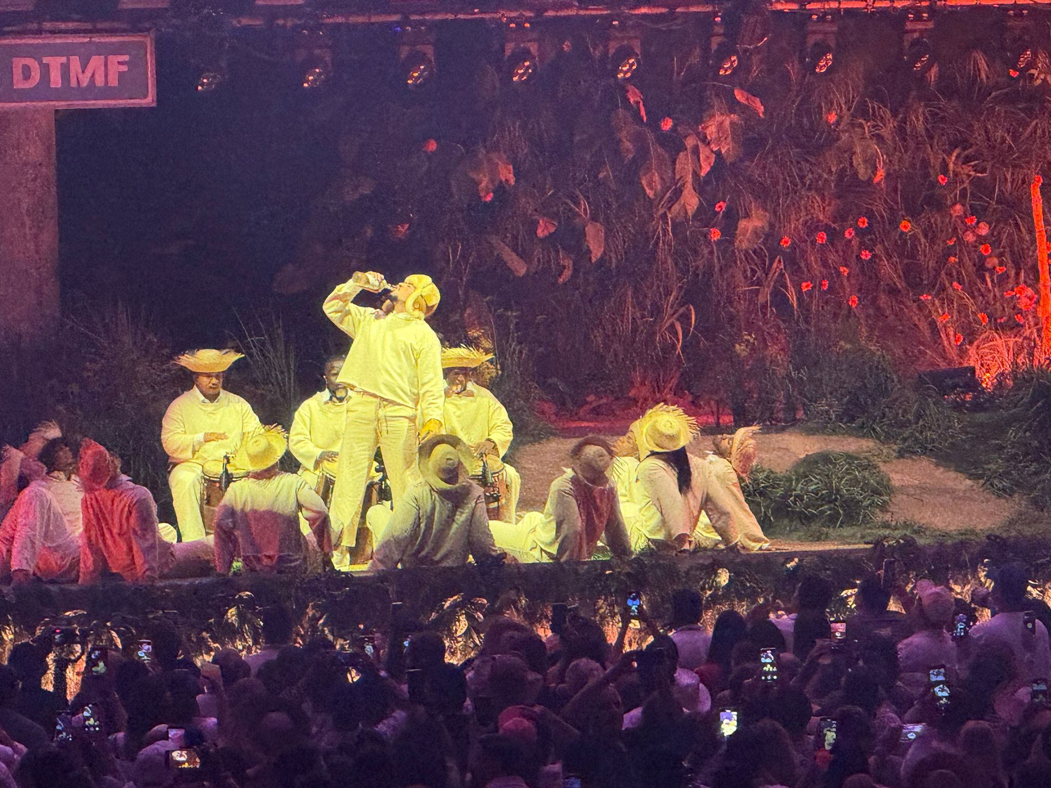 Luego de varios temas como “KETU TeCRÉ”, “EL CLúb”, “Santa”, “PIToRRO DE COCO”, y “El Apagón”, Bad Bunny se dirigió al público con “viene PR estamos en casa”.
